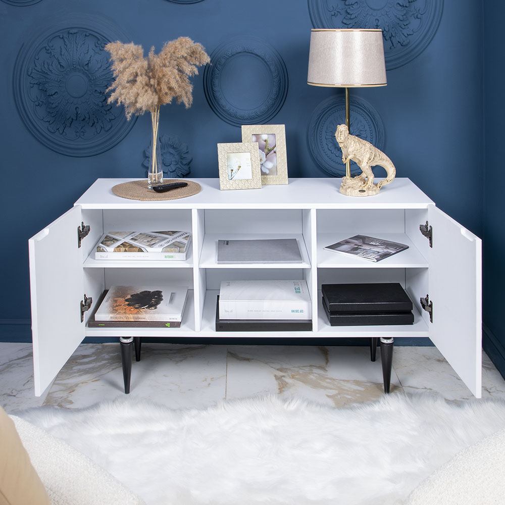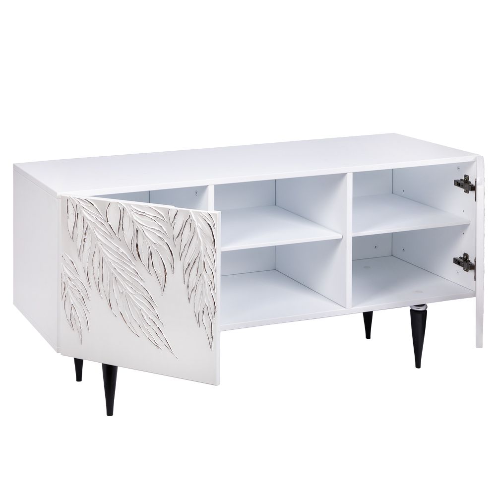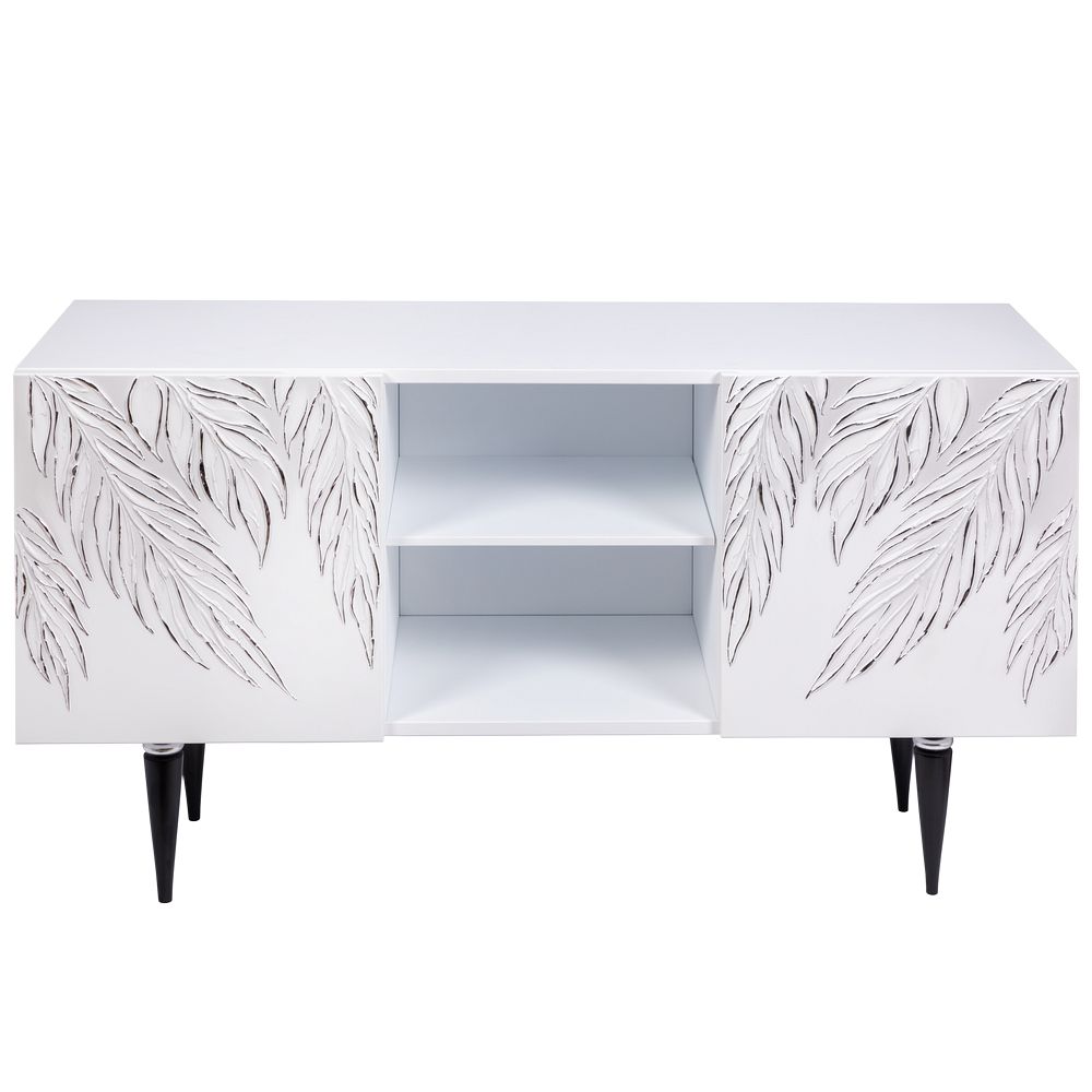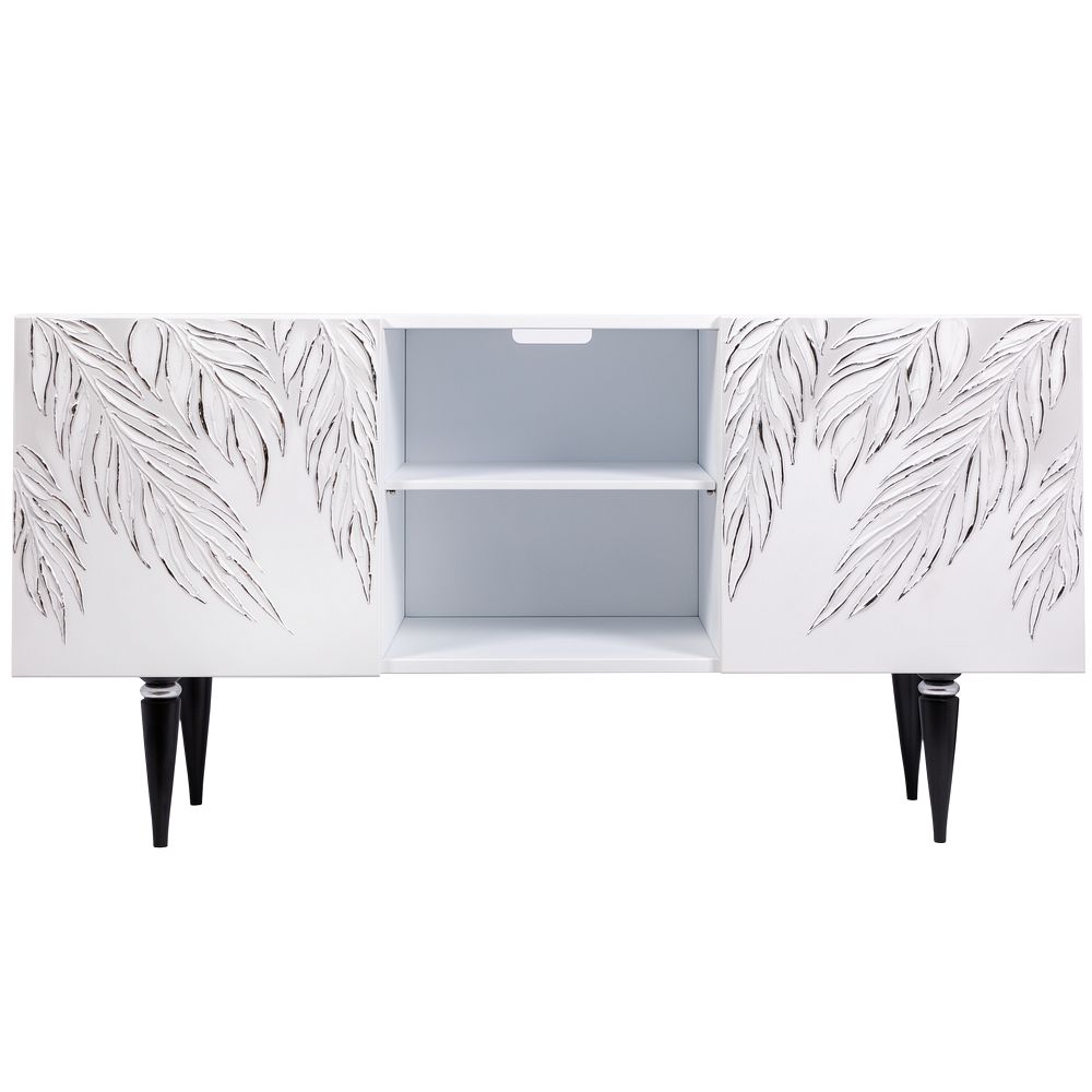 ТВ-тумба – тот предмет интерьера, в котором крайне важны не только эргономичность, но и декоративная функция. Ведь подставка под телевизор, как правило, размещается в основной части комнаты, где чаще всего собирается вся семья и гости. Дизайн тумбочки под тв Тропик можно отнести к направлению сканди. Это современный стиль, который удачно подходит практически под любой интерьер. Однако минимализм от Bogacho несколько отличается от классического понимания. Это чистые оттенки и простые линии форм, доведенные до совершенства оригинальным декором. Деревянная тумба под ТВ представлена в двух цветах: белая и серая. Кованая ручка, авторская роспись фасадов мраморной пудрой, на изящных ножках, создающих эффект парения, – все это делает этот предмет мебели настоящим украшением в гостиную.Если использовать тумбу в качестве подставки для декора, книг, ваз, свечей, то она вполне может заменить классический комод для вещей в спальне. С задачей компактного хранения тумбочка также отлично справляется: имеются два закрытых отделения с вместительными полками и одно отделение для открытого хранения. Например, журналов или статуэток. Ножки изготовлены из бука. Максимальная нагрузка - до 80кг.
