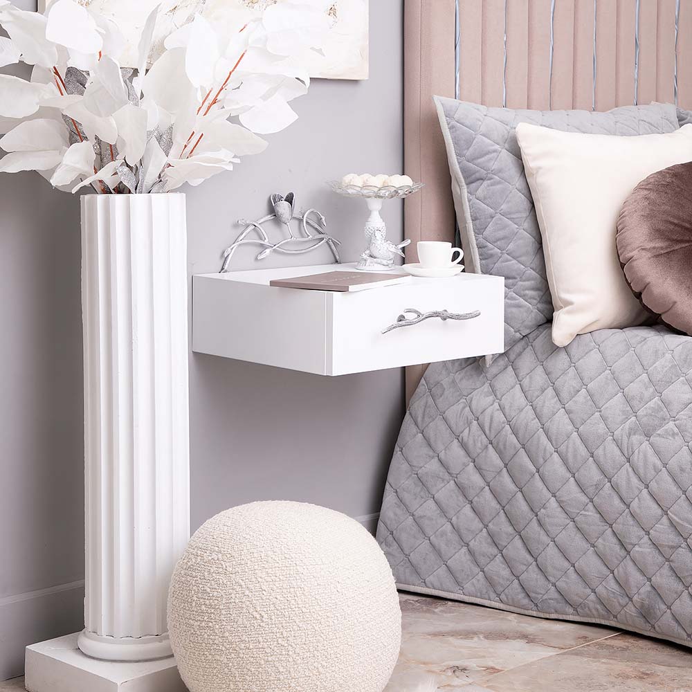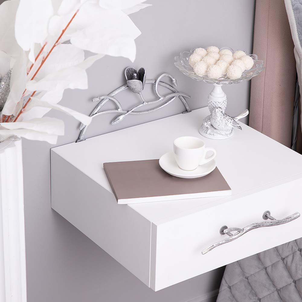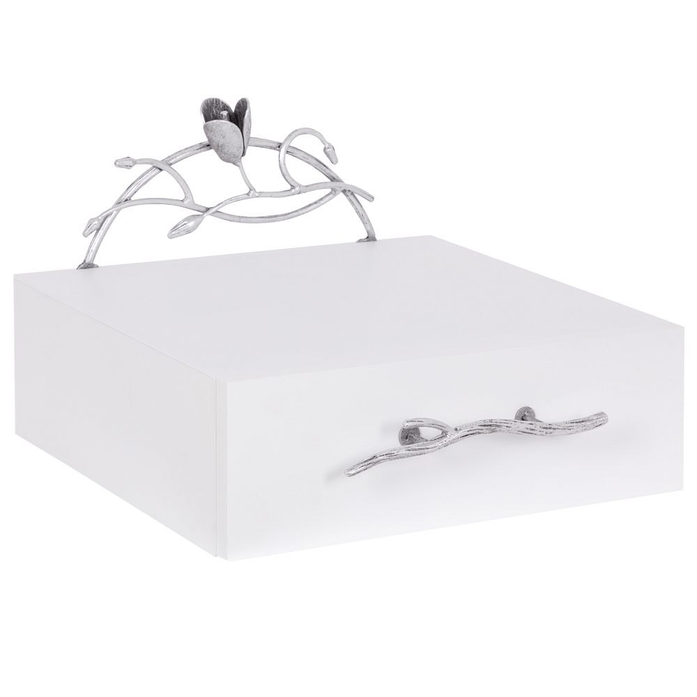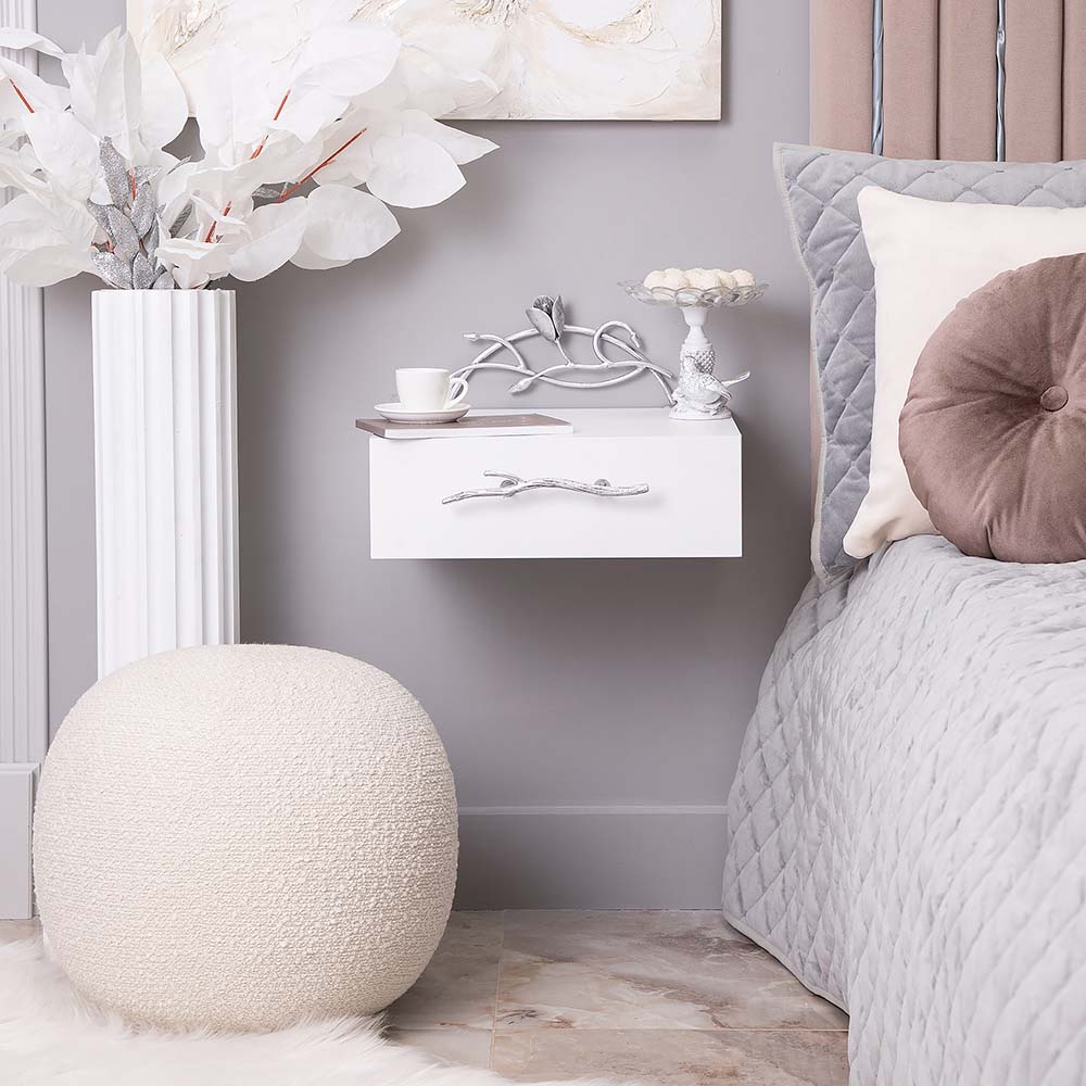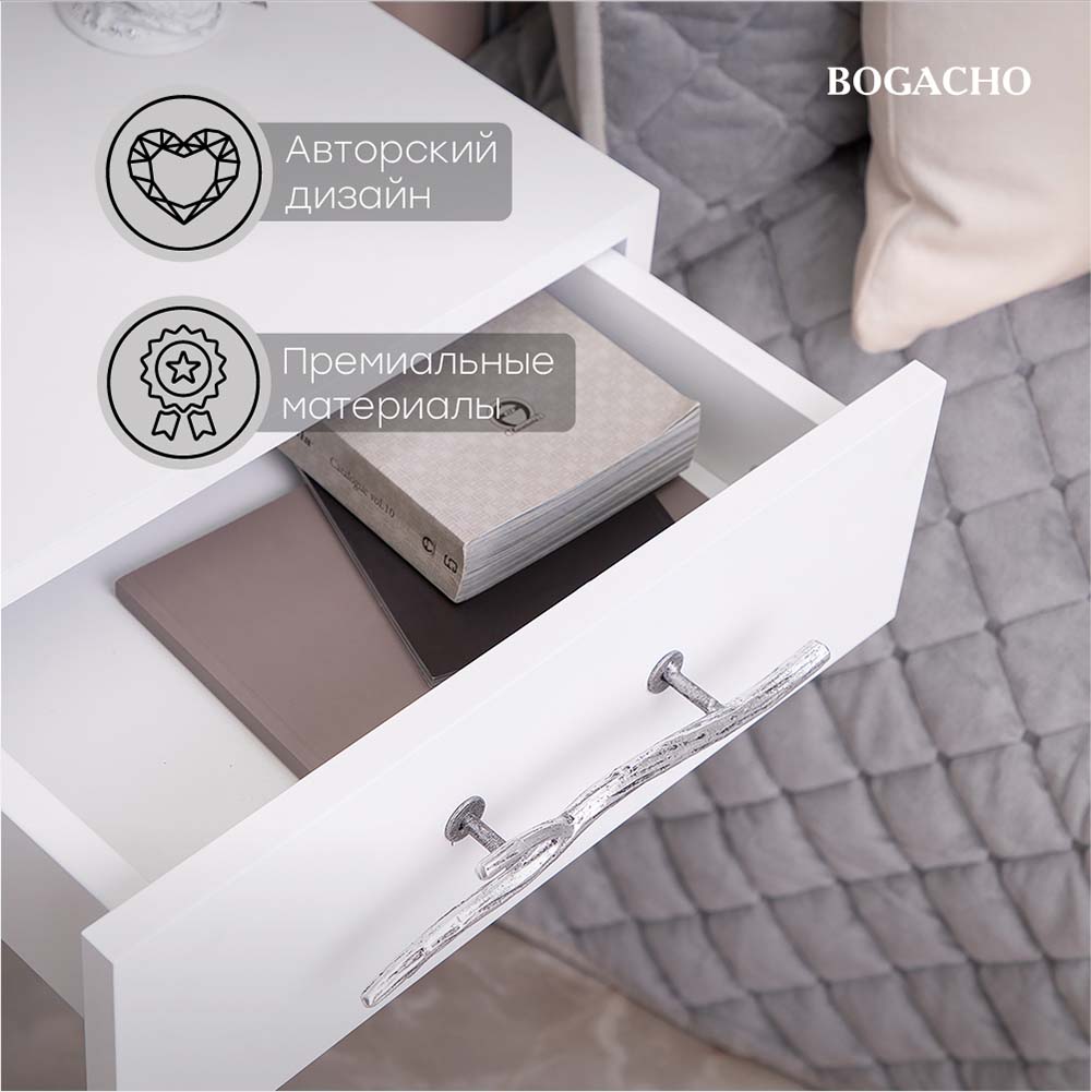 Тумба прикроватная - от российской фабрики мебели BOGACHO, эффектный предмет интерьера, который позволит создать в вашем доме изысканную обстановку. Прикроватная тумба – важный элемент мебели, без которого не обходится ни один дом или квартира. Обладая оригинальным авторским дизайном, подвесная тумба выделяется оригинальным фасадом. Изюминка изделия – шикарная кованая ручка в форме ветви дерева – ручная работа кузнеца. Настоящие украшение для комнаты. Комод для спальни снабжен качественной фурнитурой, которая обеспечивает плавный ход механизма на долгие годы. Материалом изготовления изделия служит Мдф. Комод для вещей в комнату представлены широкой палитрой цветов – белый, серый, коричневый, айвори.