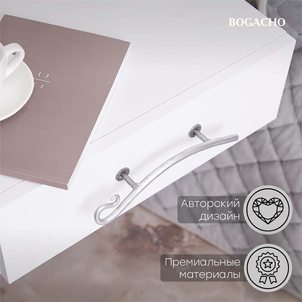 Тумба прикроватная - от российской фабрики мебели BOGACHO, эффектный предмет интерьера, который позволит создать в вашем доме изысканную обстановку. Обладая оригинальным авторским дизайном, подвесная тумба выделяется оригинальным фасадом. Изюминка изделия – шикарная кованая ручка. Изделие представляет собой листья монстеры и выполнены полностью вручную методом горячей ковки, позолочена и патинировано вручную мастерами фабрики. Комод для спальни снабжен качественной фурнитурой, которая обеспечивает плавный ход механизма на долгие годы. Комод для вещей в комнату представлены широкой палитрой цветов – белый, серый, коричневый, айвори. В спальне человек проводит очень много своего времени, поэтому нельзя недооценивать удобство маленькой, узкой тумбочки, которую можно использовать не только для хранения мелких вещей, но и для белья, одежды или косметики. Тумбочка с ящиком будет хорошо смотреться с кроватью и с диваном. Маленькая тумбочка станет настоящей находкой для тех, кому нужно обставить скромное по площади помещение, такие как балкон, ванная или коридор, эта мебель не займет много места. Несмотря на свои компактные размеры, она очень функциональна. Благодаря своим размерам тумбочка подойдет даже для маленькой квартиры. Тумбочка в прихожую не отнимает пространства, напротив, экономит его, выглядит очень красиво, современно и стильно. Тумба изготовлена из высококачественного Мдф. Покрытие износостойкое, не требует особого ухода. Достаточно протереть поверхность слегка влажной тряпочкой. Ручка выполнена из кованой стали. Любите, чтобы интерьер был в едином стиле? Присмотритесь к другой мебели фабрики BOGACHO, которая будет гармонично сочетаться друг с другом.