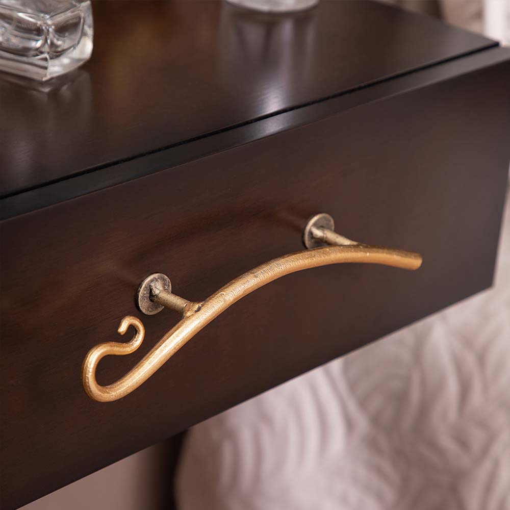 Тумба прикроватная - от российской фабрики мебели BOGACHO, эффектный предмет интерьера, который позволит создать в вашем доме изысканную обстановку. Обладая оригинальным авторским дизайном, подвесная тумба выделяется оригинальным фасадом. Изюминка изделия – шикарная кованая ручка. Изделие представляет собой листья монстеры и выполнены полностью вручную методом горячей ковки, позолочена и патинировано вручную мастерами фабрики. Комод для спальни снабжен качественной фурнитурой, которая обеспечивает плавный ход механизма на долгие годы. Комод для вещей в комнату представлены широкой палитрой цветов – белый, серый, коричневый, айвори. В спальне человек проводит очень много своего времени, поэтому нельзя недооценивать удобство маленькой, узкой тумбочки, которую можно использовать не только для хранения мелких вещей, но и для белья, одежды или косметики. Тумбочка с ящиком будет хорошо смотреться с кроватью и с диваном. Маленькая тумбочка станет настоящей находкой для тех, кому нужно обставить скромное по площади помещение, такие как балкон, ванная или коридор, эта мебель не займет много места. Несмотря на свои компактные размеры, она очень функциональна. Благодаря своим размерам тумбочка подойдет даже для маленькой квартиры. Тумбочка в прихожую не отнимает пространства, напротив, экономит его, выглядит очень красиво, современно и стильно. Тумба изготовлена из высококачественного Мдф. Покрытие износостойкое, не требует особого ухода. Достаточно протереть поверхность слегка влажной тряпочкой. Ручка выполнена из кованой стали. Любите, чтобы интерьер был в едином стиле? Присмотритесь к другой мебели фабрики BOGACHO, которая будет гармонично сочетаться друг с другом.