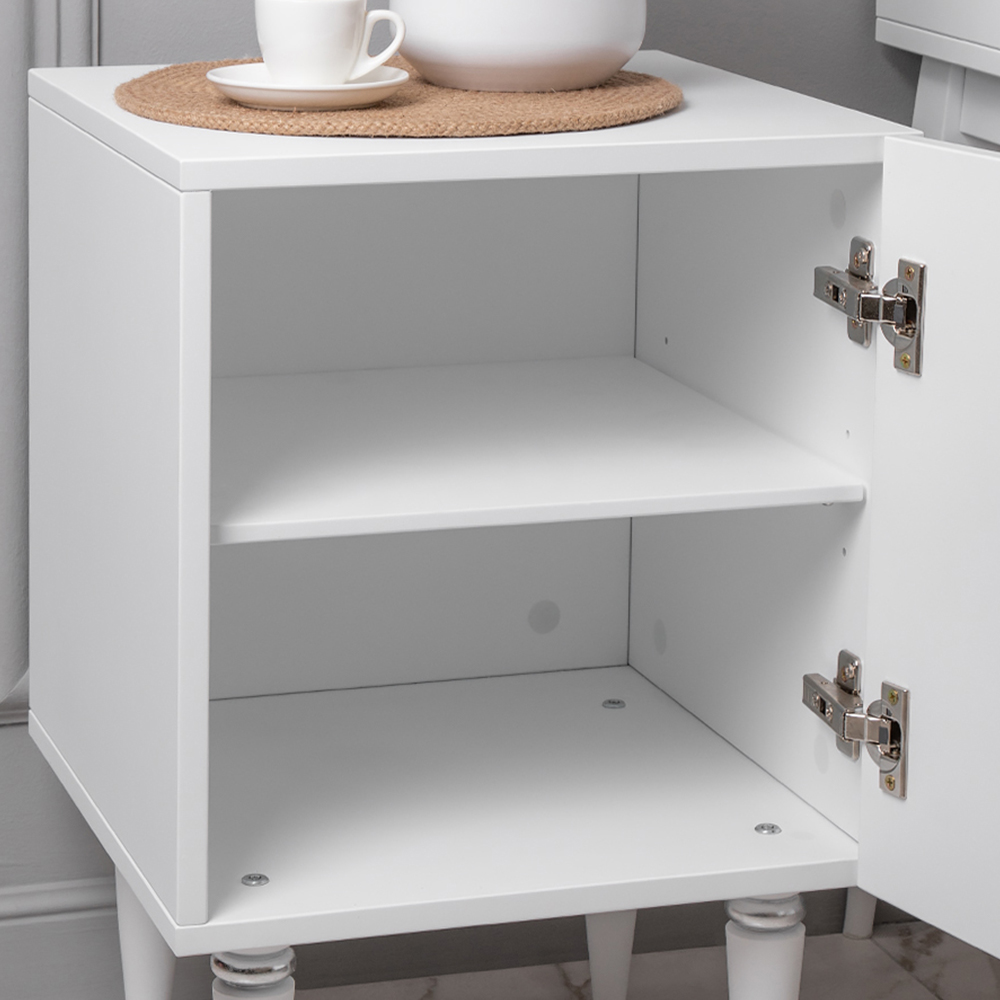 Внутри тумбы вместительное отделение с двумя полками, которое заменит вам целый прикроватный комод.