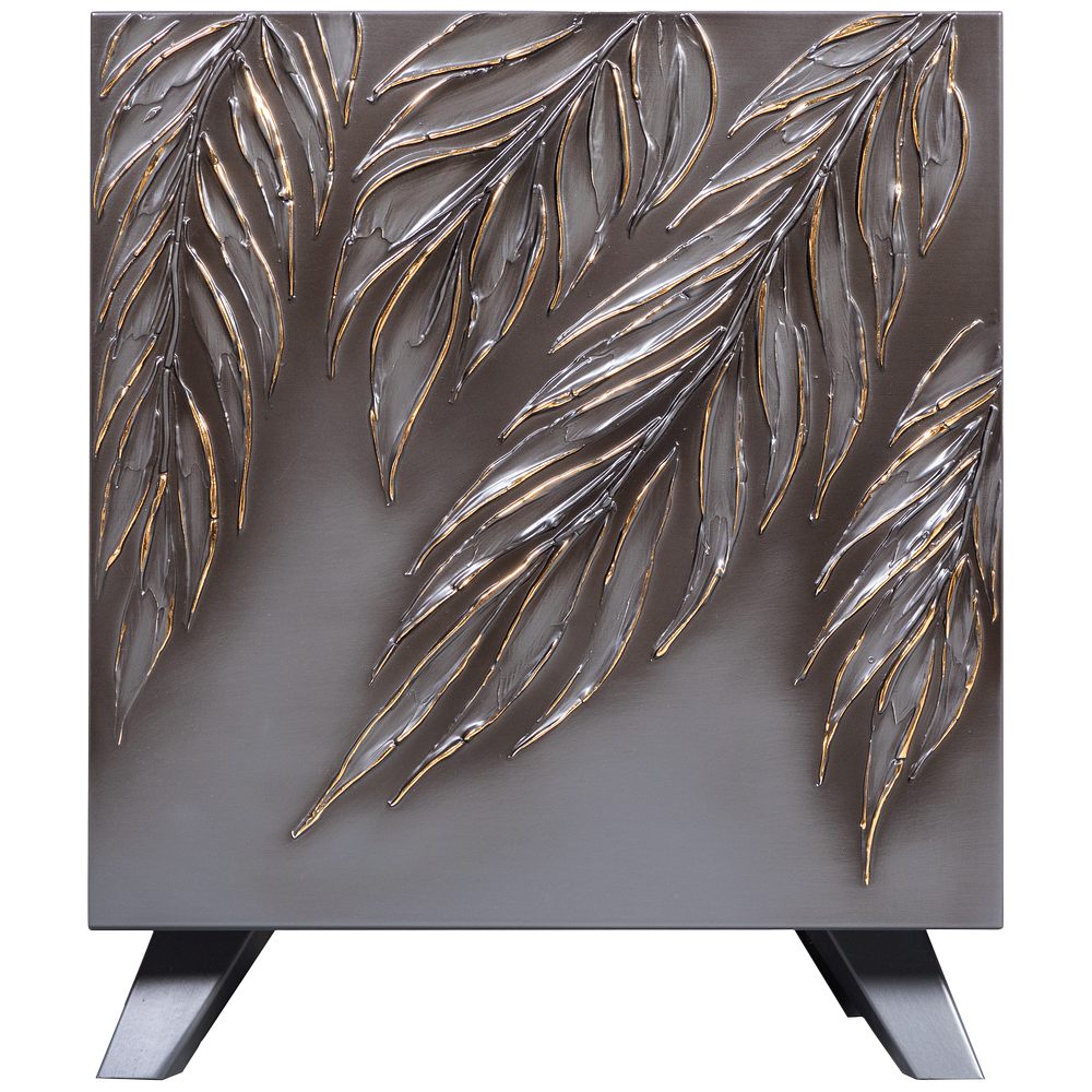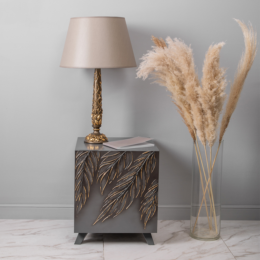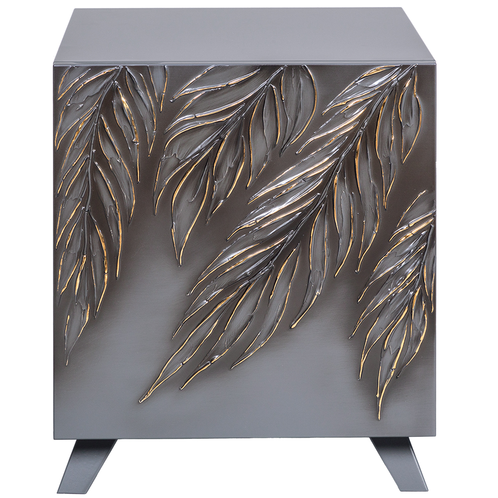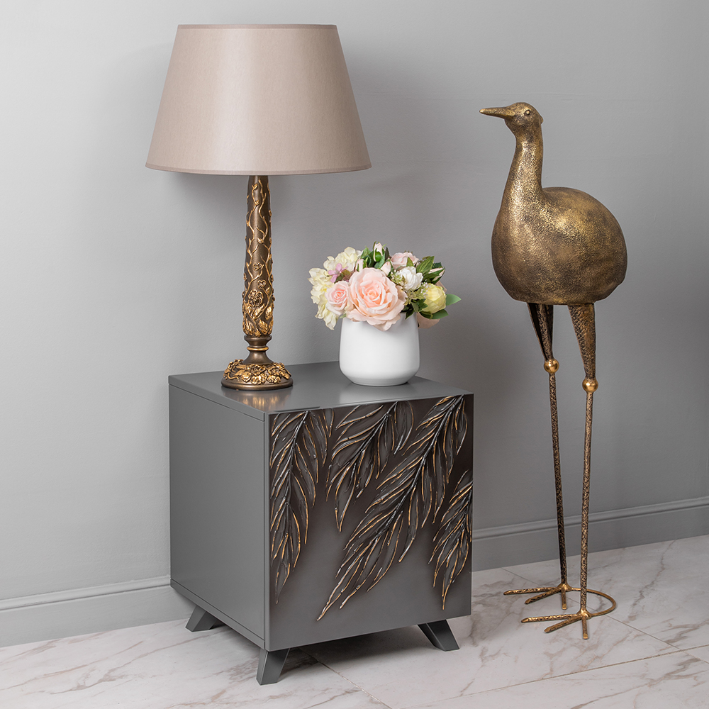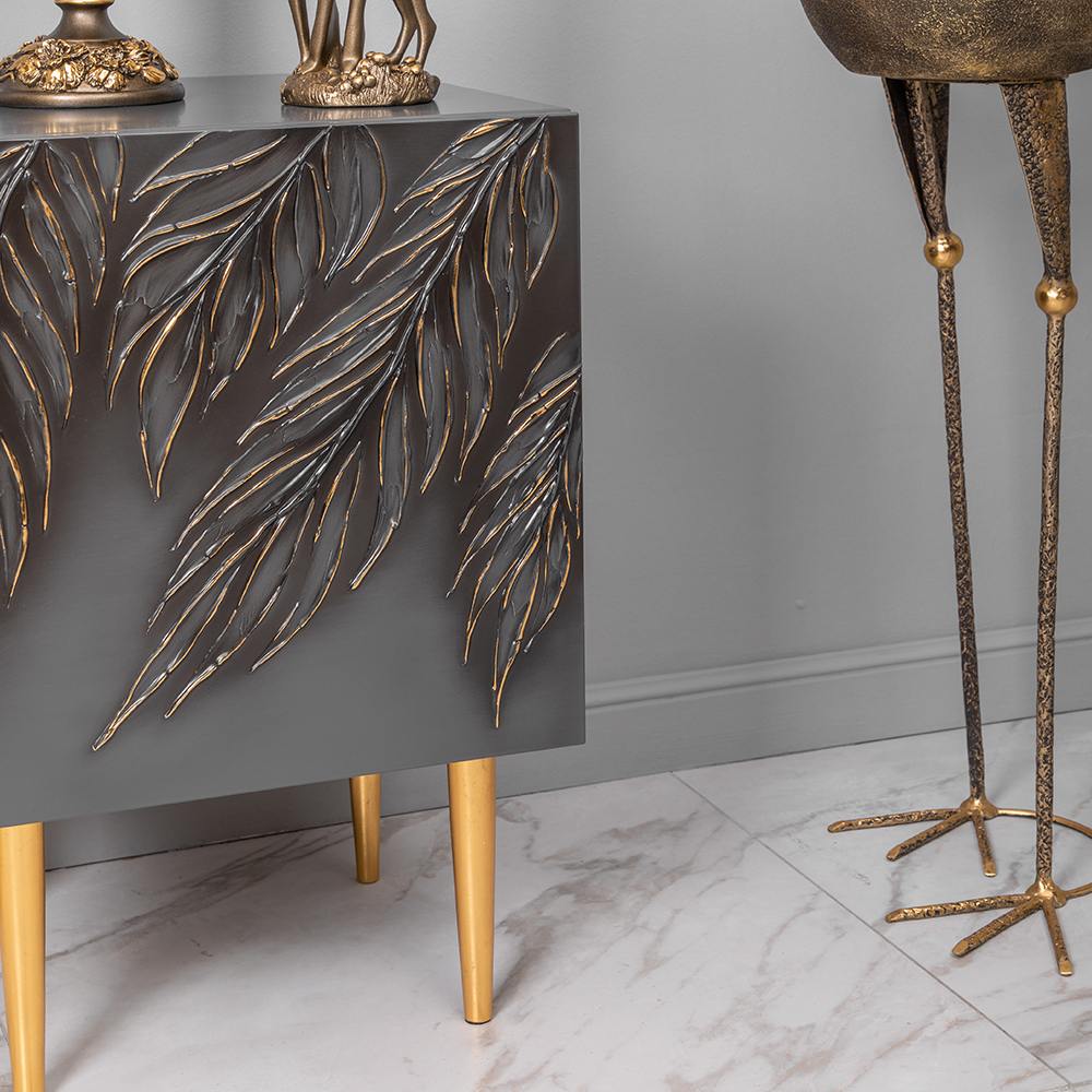Тумба серая – это находка в современный интерьер в стиле сканди. Интересный фасад с тропическими листьями из коллекции Тропик придаст лоска оформлению комнаты. Тумбочка деревянная: корпус выполнен из мдф, который располагается на ножках из бука.