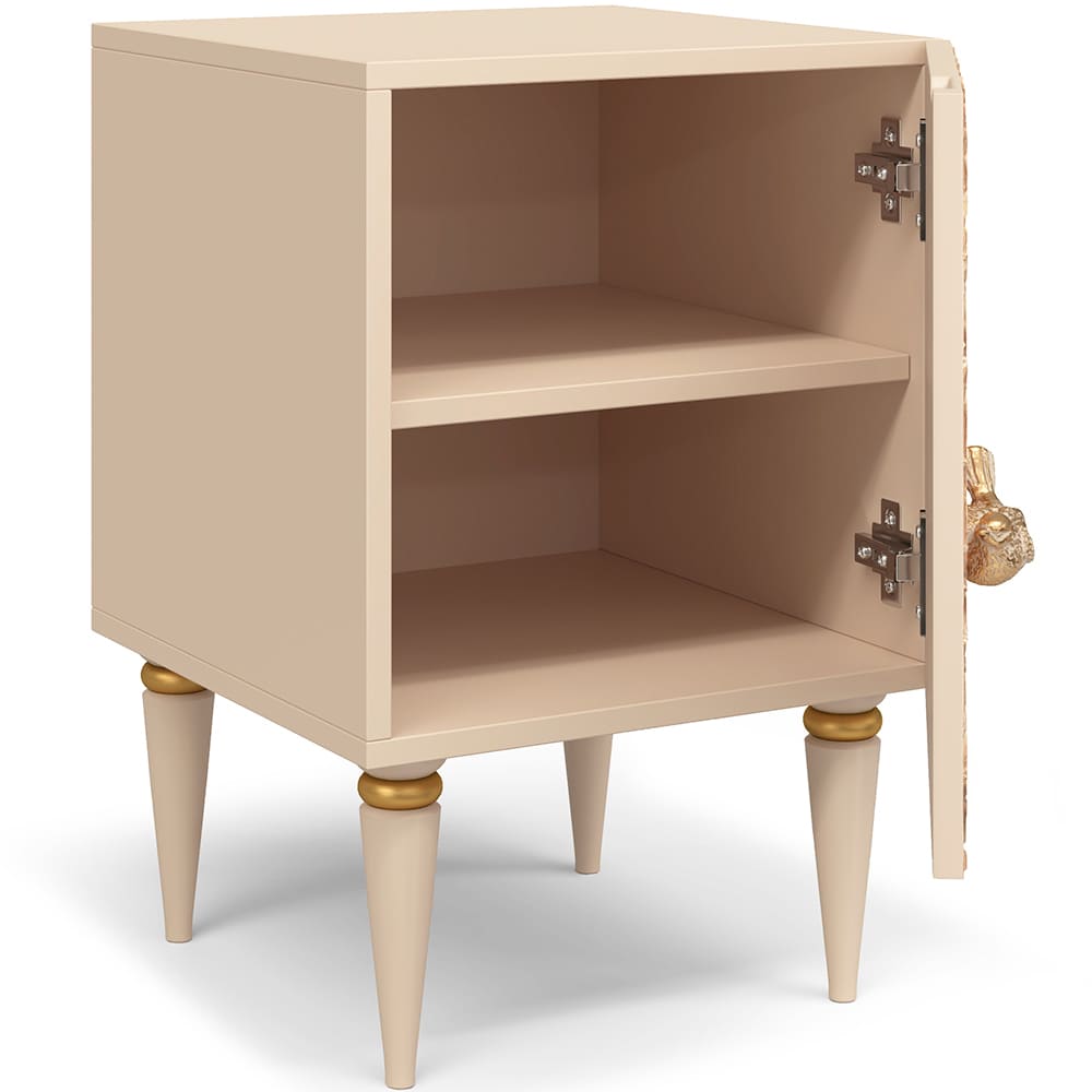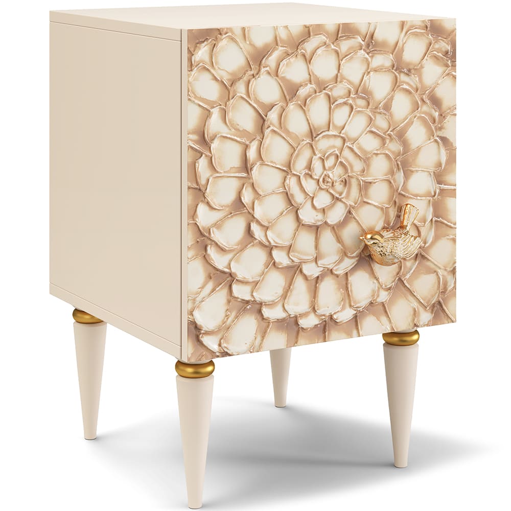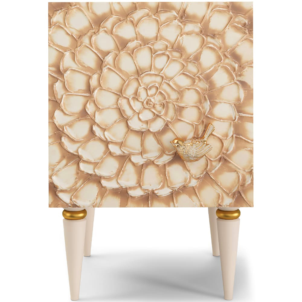 Тумба из мдф с распашной дверцей и двумя полками. Тумба совершенно нового формата позволяет преобразить дизайн и заполнить пространство природным шармом. Конические ножки прочно держат классическую форму изделия и добавляют изысканности интерьеру вашего дома. Тумба изготавливается из мдф. Декоративные элементы выполняются в технике мастихиновой живописи из натурального коелгинского мрамора мелкой фракции.