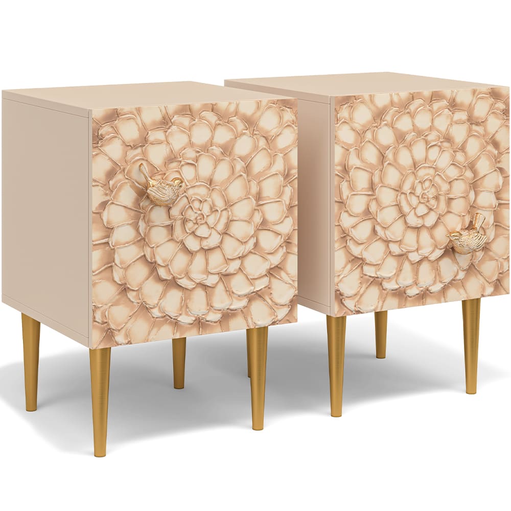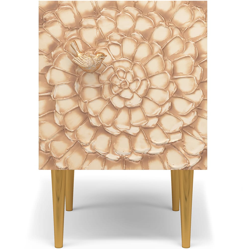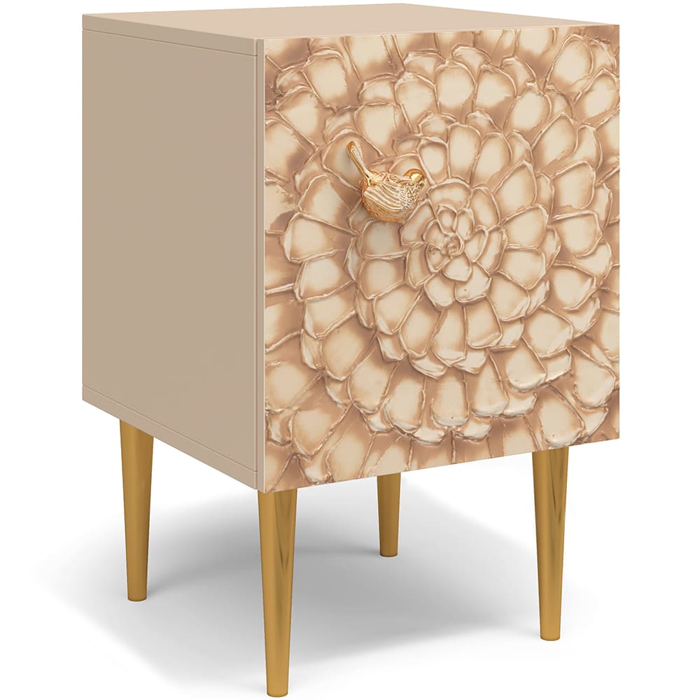 Тумба из мдф с распашной дверцей и двумя полками. Тумба совершенно нового формата позволяет преобразить дизайн и заполнить пространство природным шармом. Конические ножки прочно держат классическую форму изделия и добавляют изысканности интерьеру вашего дома. Тумба изготавливается из мдф. Декоративные элементы выполняются в технике мастихиновой живописи из натурального коелгинского мрамора мелкой фракции.