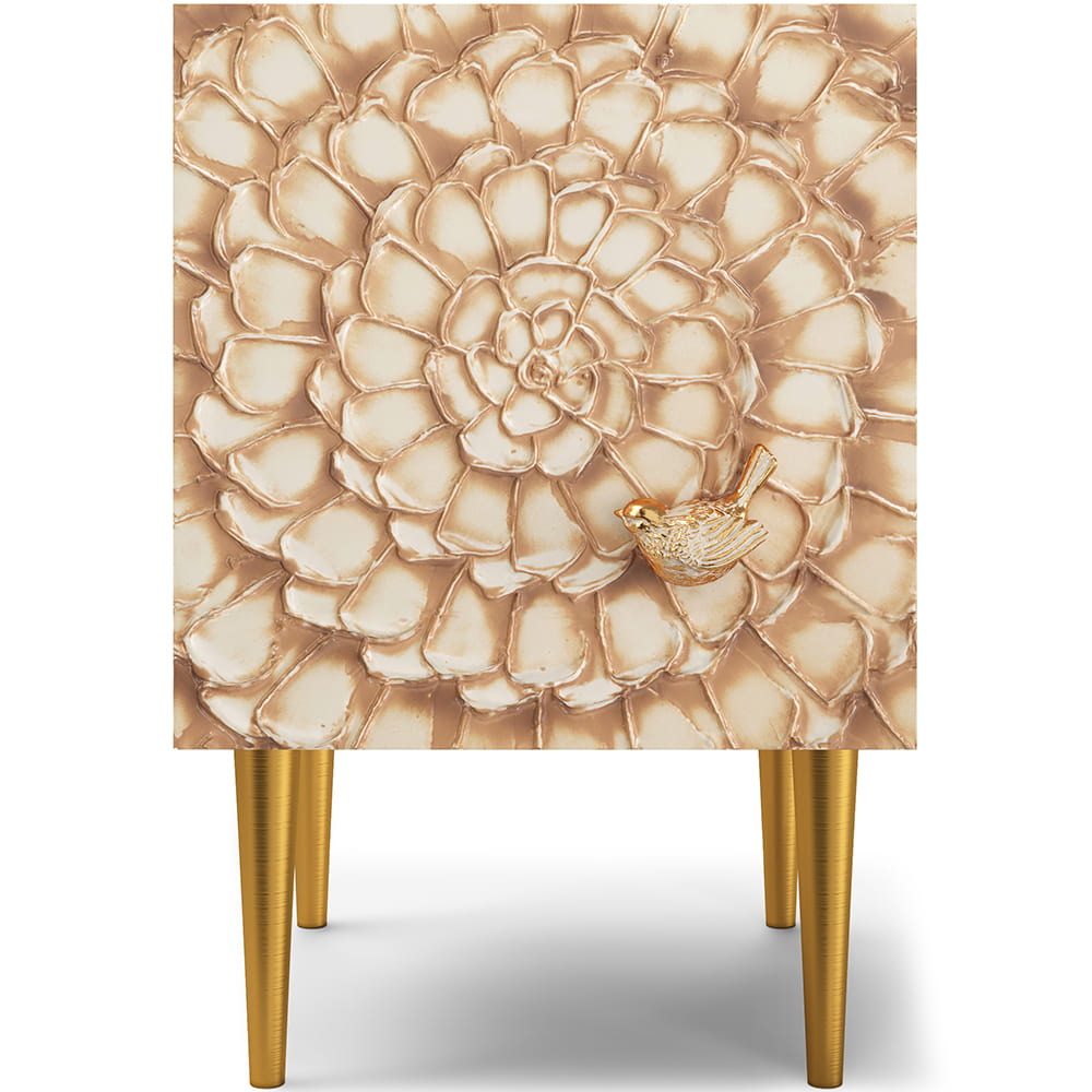 Тумба из мдф с распашной дверцей и двумя полками. Тумба совершенно нового формата позволяет преобразить дизайн и заполнить пространство природным шармом. Конические ножки прочно держат классическую форму изделия и добавляют изысканности интерьеру вашего дома. Тумба изготавливается из мдф. Декоративные элементы выполняются в технике мастихиновой живописи из натурального коелгинского мрамора мелкой фракции.