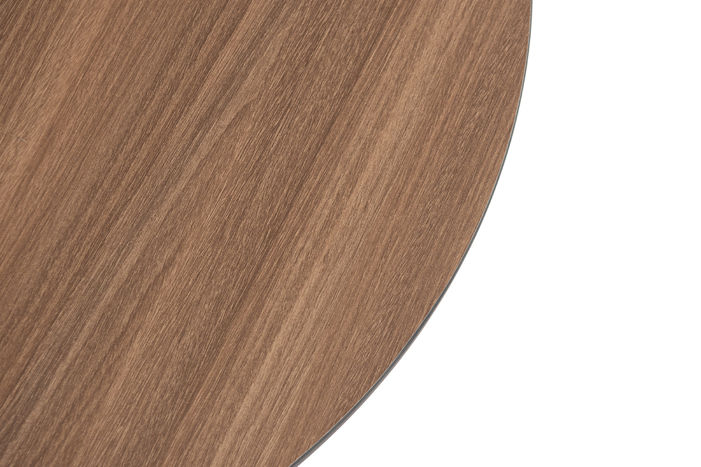 Интерьерный круглый стол «Каффе» со столешницей из HPL молочного цвета. Это высококачественный ударопрочный компакт-пластик, обладающий низкой пористостью, что предотвращает впитывание жидкостей, поэтому столы из HPL идеально подходит для обеденных зон. Толщина столешницы – 12 мм.