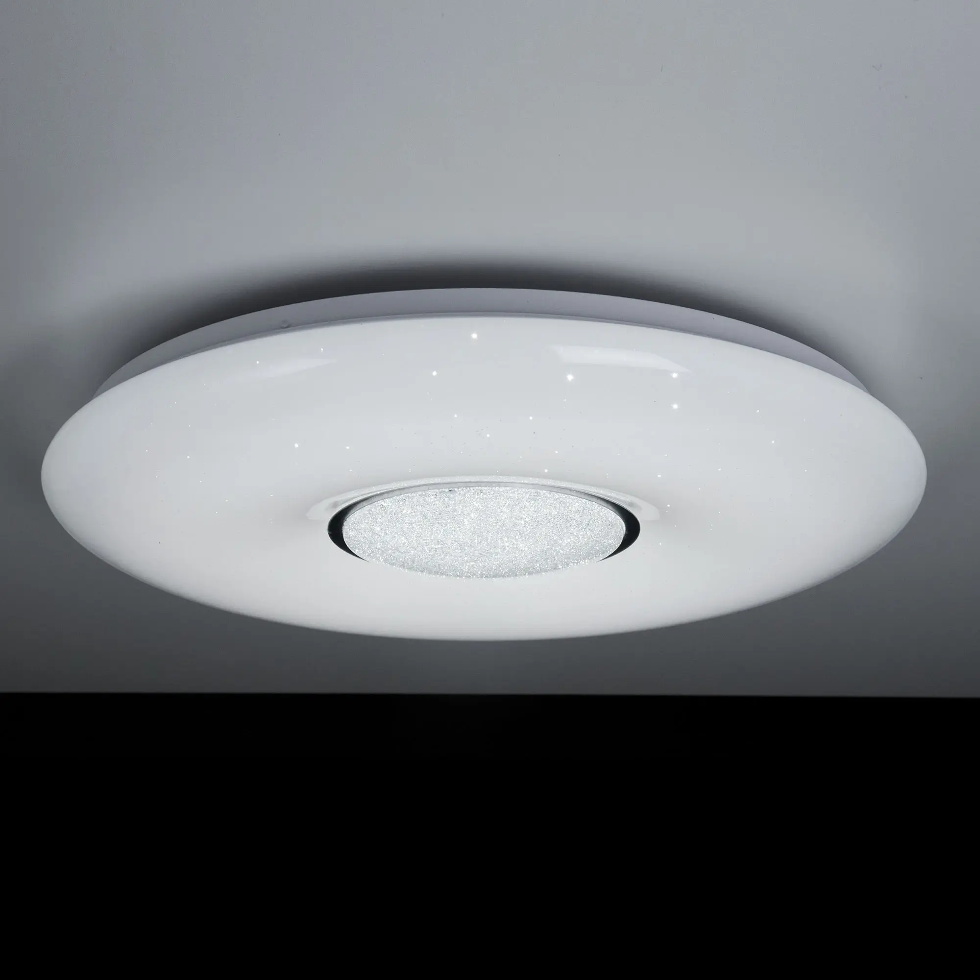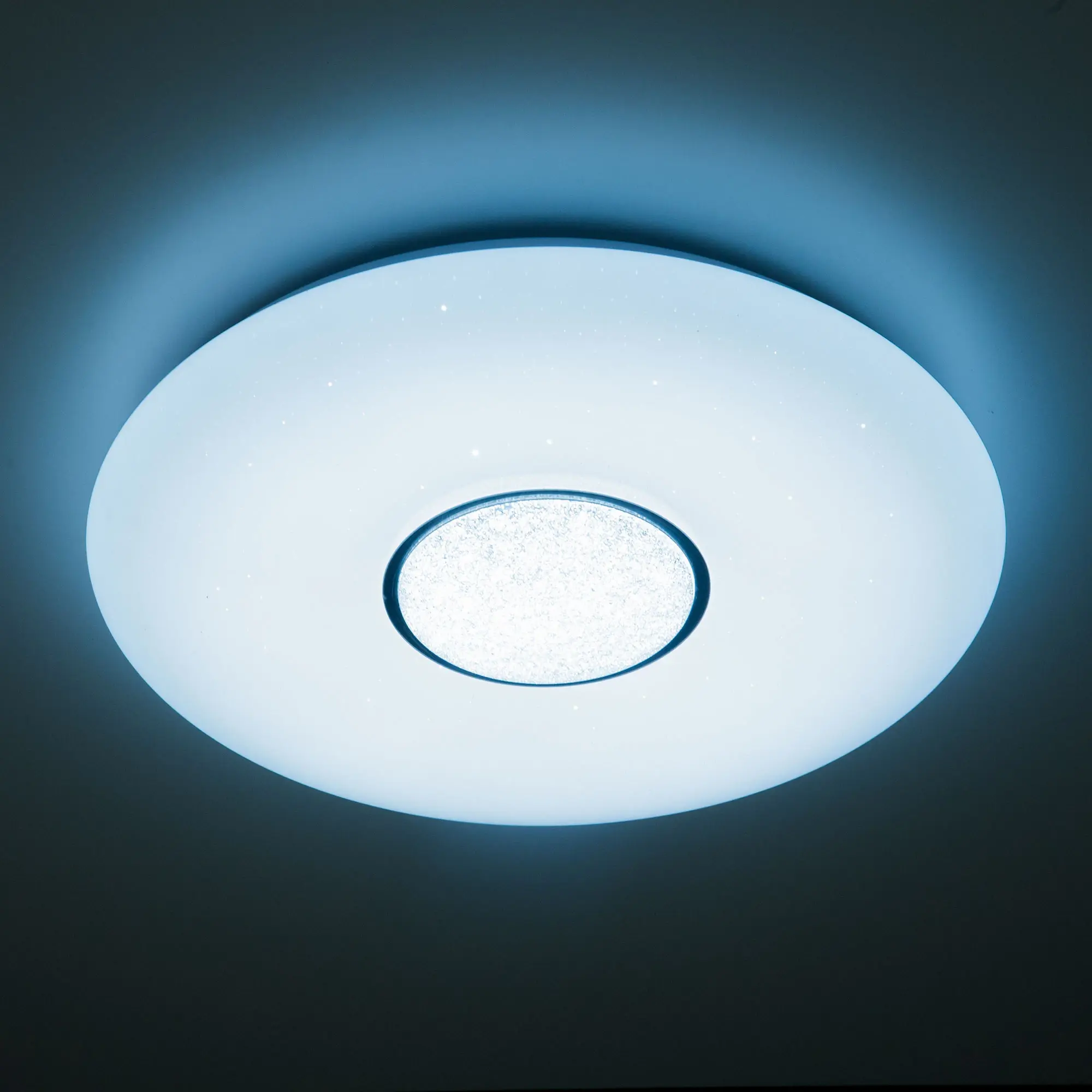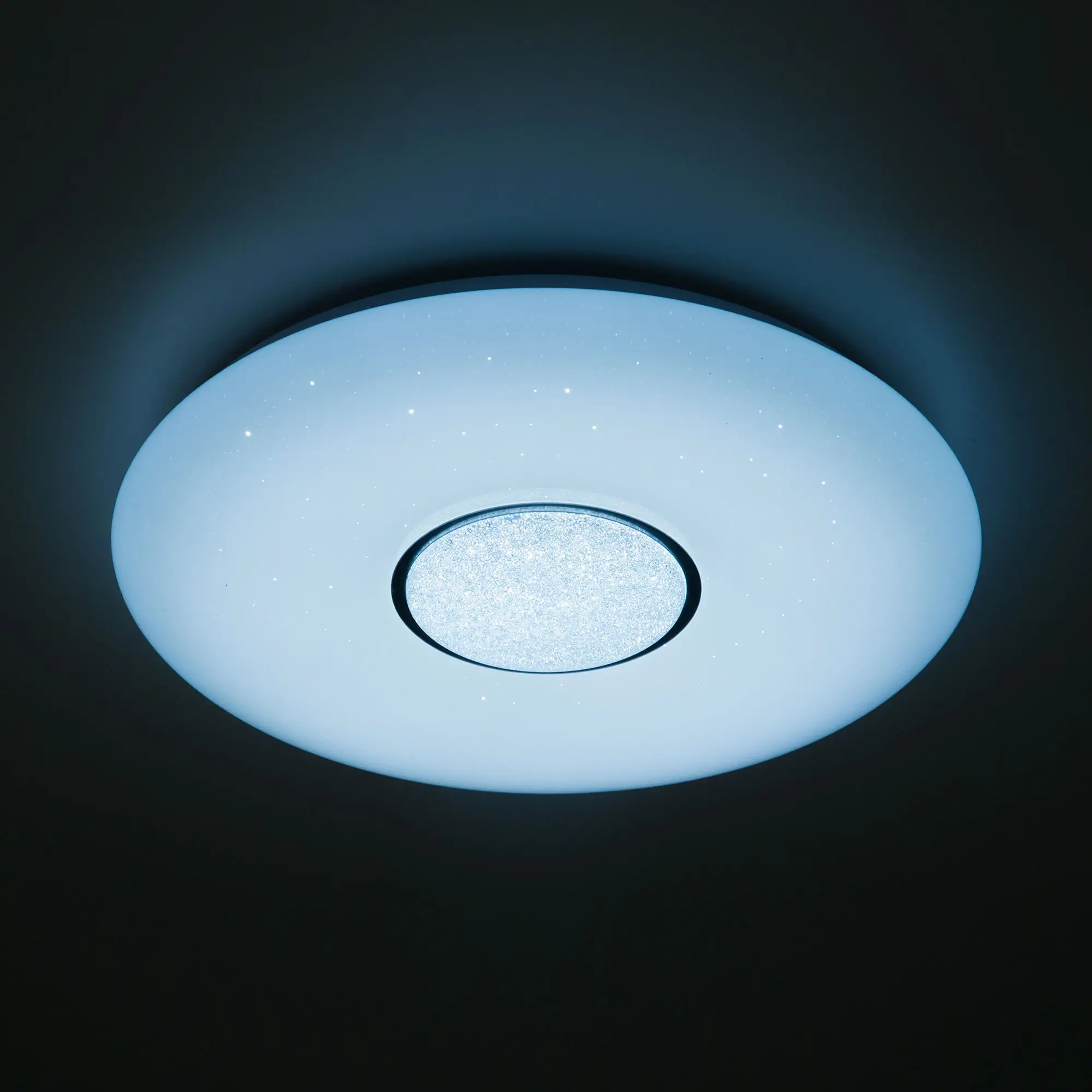 Умная люстра Citilux Смарт CL74360 с голосовым управлением Светодиодная потолочная люстра Citilux Смарт CL74360 является ярким представителем современных УМНЫХ хай-тек светильников экосистемы Citilux SMART. Выпускается с белым глянцевым плафоном с эффектом «звездного неба». Светильник накладной, круглой формы, крепление подходит для всех типов потолков, в том числе натяжных. Моделью можно управлять: из приложения на смартфоне по Wi-Fi, с помощью голосового помощника Алиса от Яндекс, пультом дистанционного управления и с настенного выключателя. Модель оснащена мощными светодиодами холодного и теплого света, независимой цветной подсветкой RGB. Мощность светильника 60Вт, с диммером и функцией плавной регулировки. Диаметр 500мм.