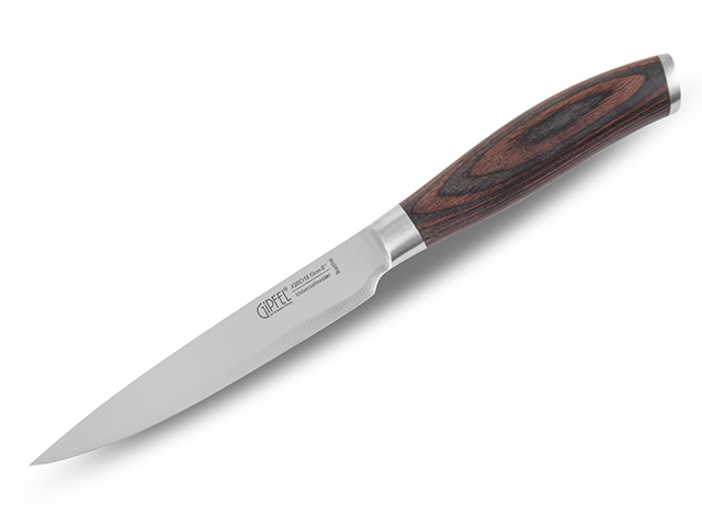 Нож универсальный GIPFEL ACCORD 9899. Длина лезвия 13см. Материал лезвия: сталь X30CrMoV13. Материал ручки: сталь, древеснослоистый пластик. Толщина лезвия 2,0мм.