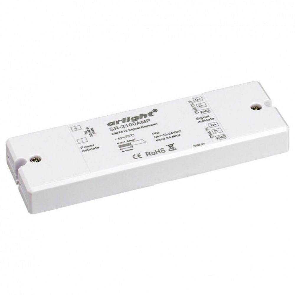 DMX-усилитель, служит для усиления DMX сигнала (для увеличения дистанции между DMX-контроллером и DMX-декодером). Напряжение 12-24 В. Размеры 145x46x16 мм.