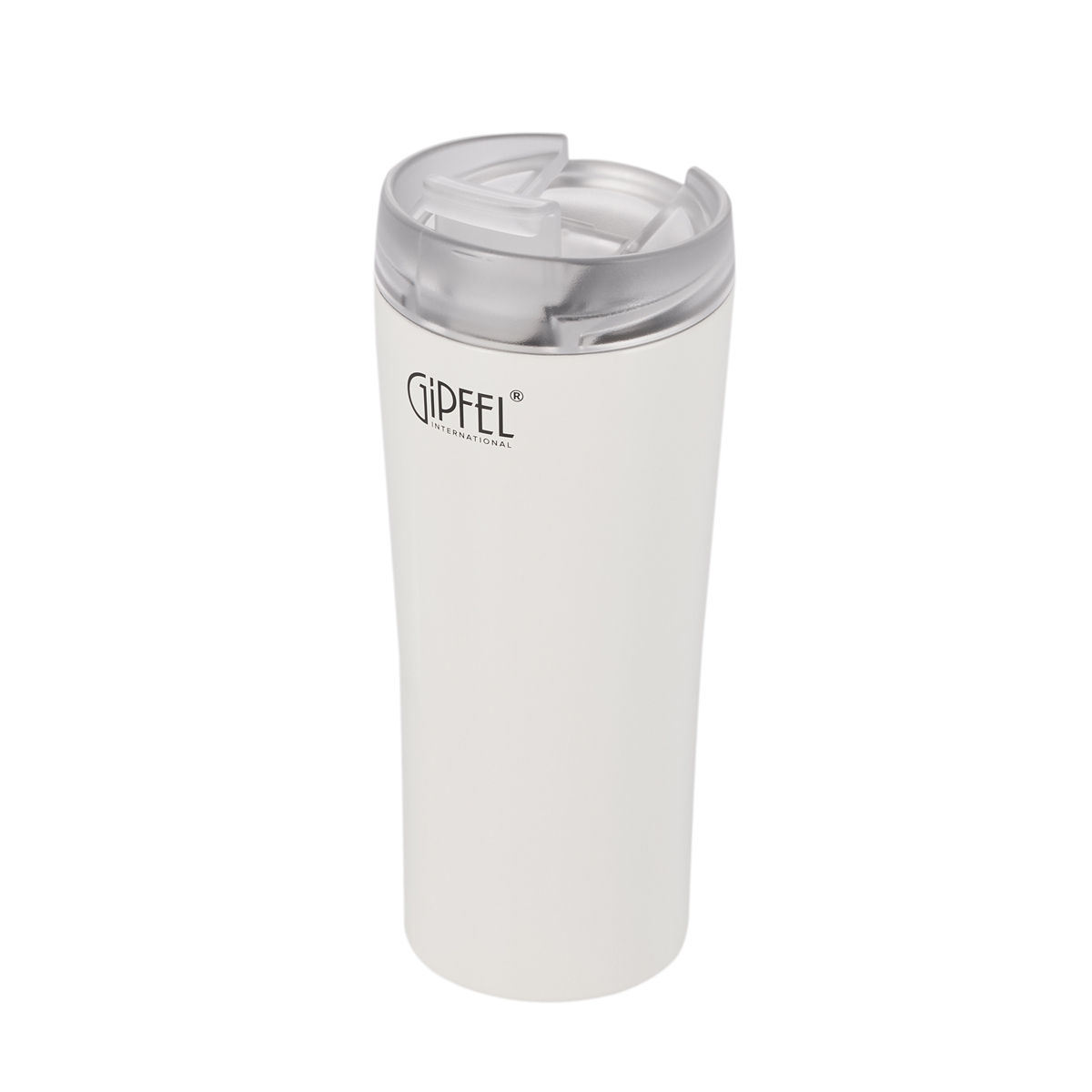 Вакуумная кружка Gipfel Classic 8312. Материал: нержавеющая сталь 18/10, силикон, пластик. У кружки глянцевая поверхность молочно-белого цвета и эргономичный корпус, позволяющий ее удобно держать ладонью. Кружка имеет мерную шкалу до 470 мл. На крышке расположен силиконовый клапан, который исключит проливание напитка. Корпус не нагревается за счет двойных стенок и вакуумной прослойки между ними.