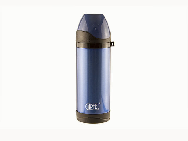 Термос вакуумный GIPFEL 8303 объемом 370мл. Термос удобно использовать каждый день, брать с собой на прогулку или в поездку, он не займет много места в рюкзаке или сумке. Материал: нержавеющая сталь 18/10, пластик, силикон. Цвет: синий.