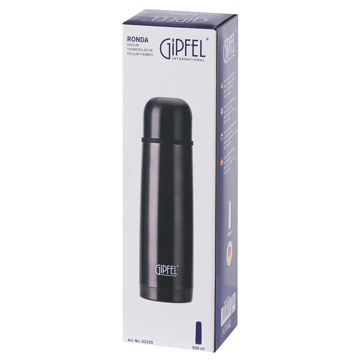 Вакуумный термос Gipfel Ronda 52329. Объем 500 мл. Корпус изготовлен из нержавеющей стали 18/10, материала прочного, безопасного для здоровья и долговечного.