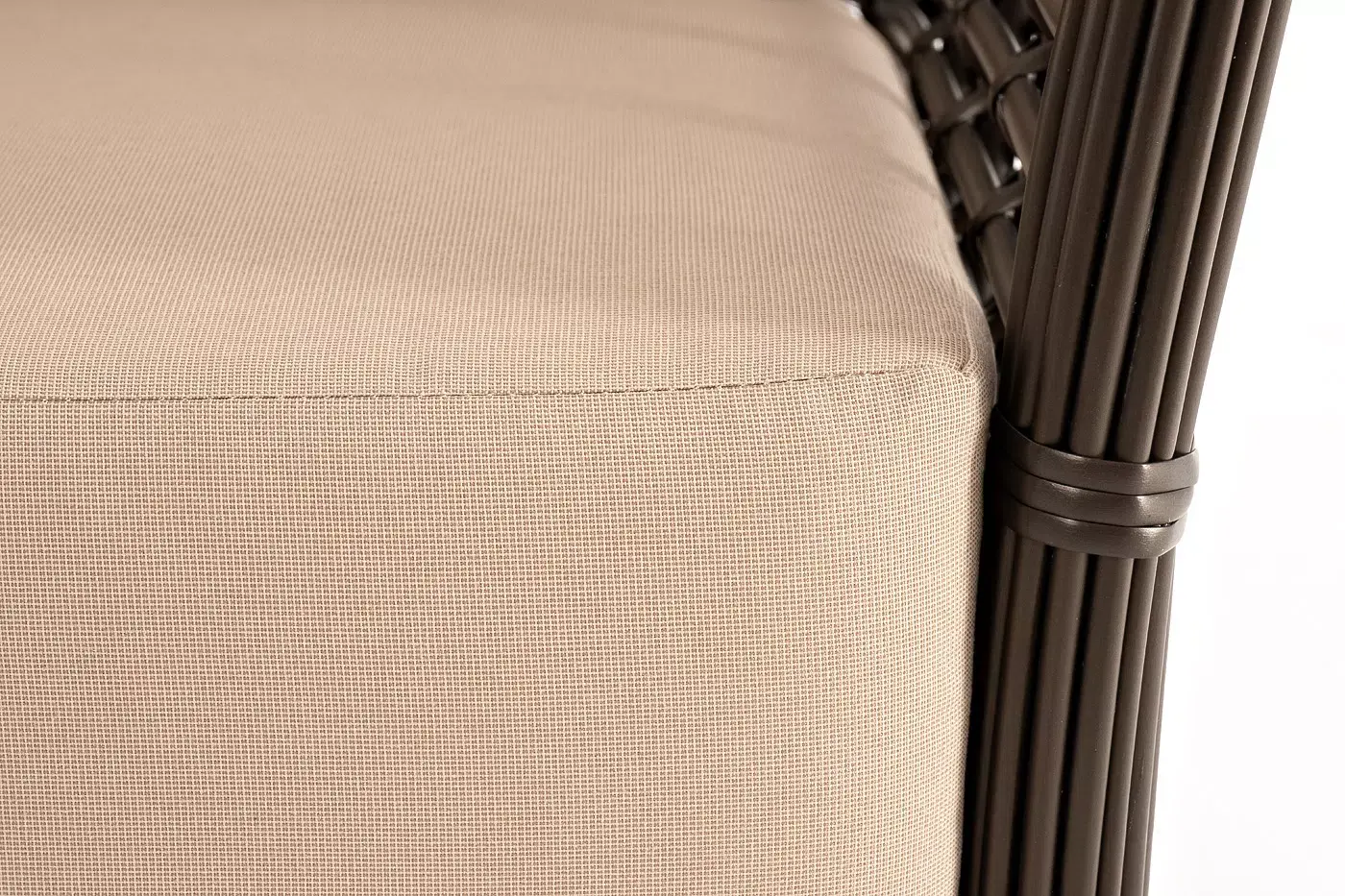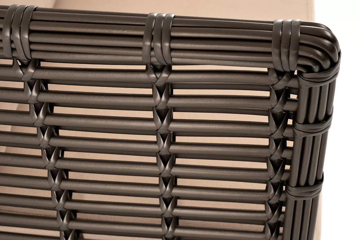 Ручное круглое плетение является основным декоративным элементом мебели. Оно выполнено из искусственного ротанга в бронзовом цвете.