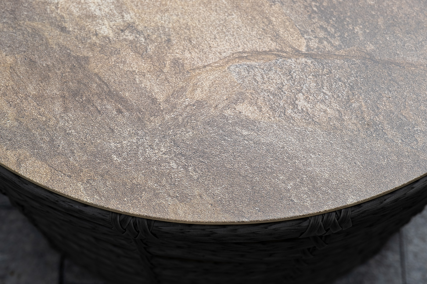 Журнальный столик выполнен из алюминия, вручную оплетенного круглым искусственным ротангом. Столешница из закаленного стекла толщиной 5 мм. Благодаря износостойким материалам, стол пригоден для использования на улице при любой погоде и не требует специальных условий хранения.