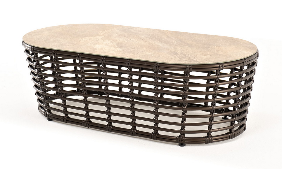 Плетеный столик представлен в бронзовом цвете.