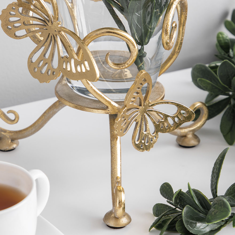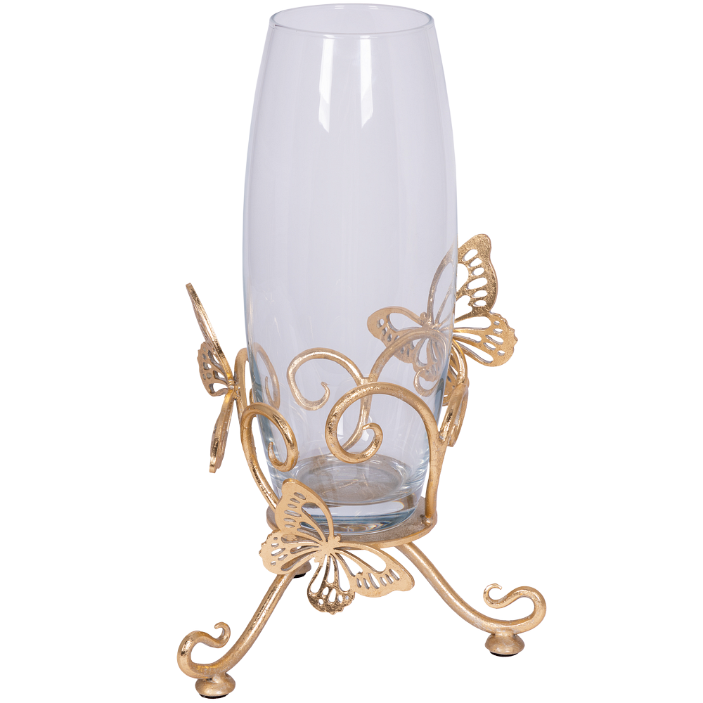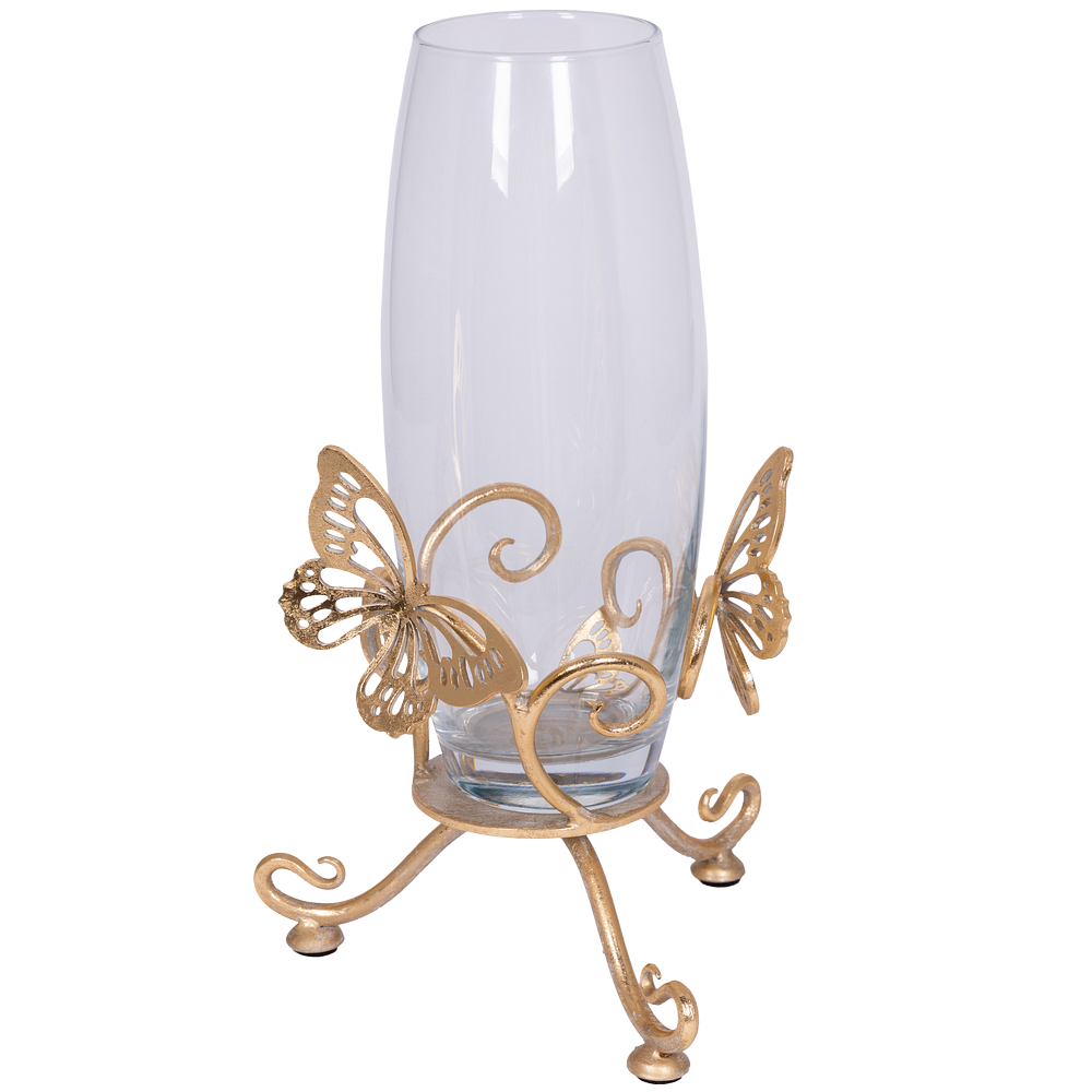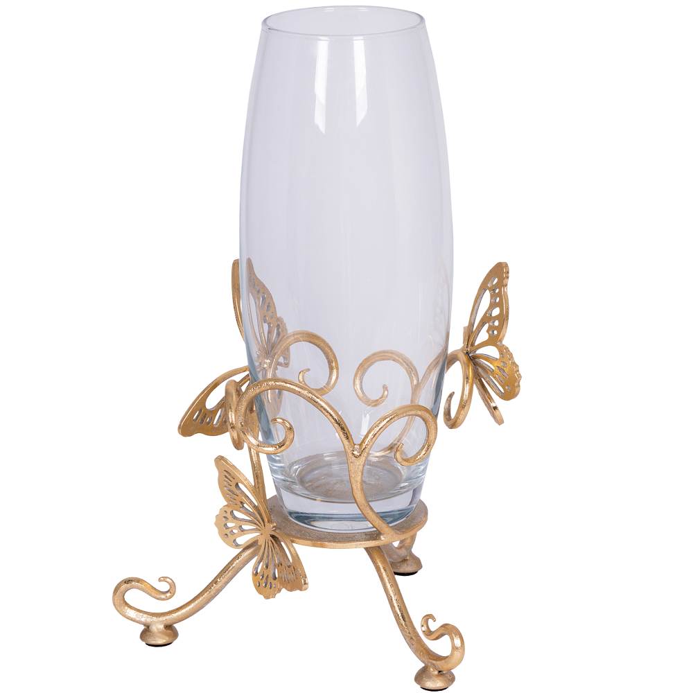 Классическая форма вазы Бабочка Эир. Кремовый цвет и необычное основание на широкой подставке привлекают внимание всех, кто видит интерьерные вазы BOGACHO. Эклектичный ансамбль придаёт изделию эксклюзивный шарм.Добавьте благородства своему интерьеру в классическом или современном стиле.Подставка вазы изготовлена из легированной стали, отшлифована и патинирована вручную.