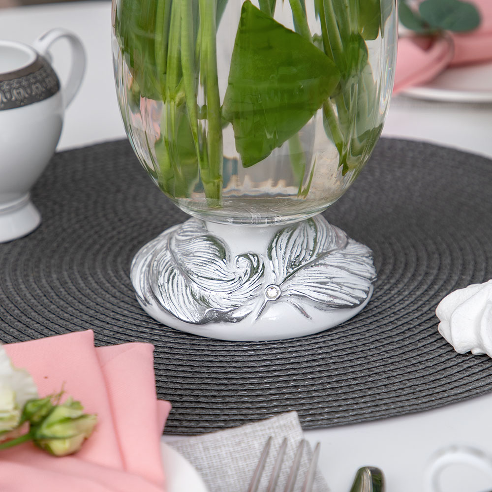 Ваза – это обязательное обрамление для цветочной композиции. В красивой, эксклюзивной вазе для цветов фабрики BOGACHO и букет звучит иначе. В сочетании с плавными линиями и эксклюзивным дизайном цветы будут смотреться великолепнее и богаче. Основное предназначение вазы для цветов не только насыщать цветы влагой, но и украшение для дома, привносить в помещение уют, комфорт, эстетику. Сама по себе ваза стеклянная выглядит шикарно, поэтому ее можно смело поставить на рабочем столе в кабинете или на кухне дома. Ваза декоративная добавит «изюминку» в ваш интерьер. Ваза из стекла украсит любую комнату Вашего дома.Ваза для интерьера будет великолепно смотреться с как с живыми, так и с искусственными цветами, ваза для сухоцветов. Ваза настольная эффектно выглядит и гармонично вписывается как в домашнюю, так и в рабочую обстановку с любым интерьером.Для защиты стола от царапин, мы установили накладки из мягкой ткани, препятствующая истиранию поверхности.Ваза на ножке завернута в воздушно - пузырчатую пленку, ложемент и надежно упакована в коробку из гофрированного картона, поэтому данный аксессуар для интерьера приедет к вам не поврежденным. Любите, чтобы интерьер был в едином стиле? Присмотритесь к продукции BOGACHO, которая будет гармонично сочетаться друг с другом. Каждый может выбрать из широкого ассортимента наших декоративных ваз идеальный аксессуар для дома.Не рекомендуем мыть в посудомоечной машине, так как есть риск появления микротрещин.
