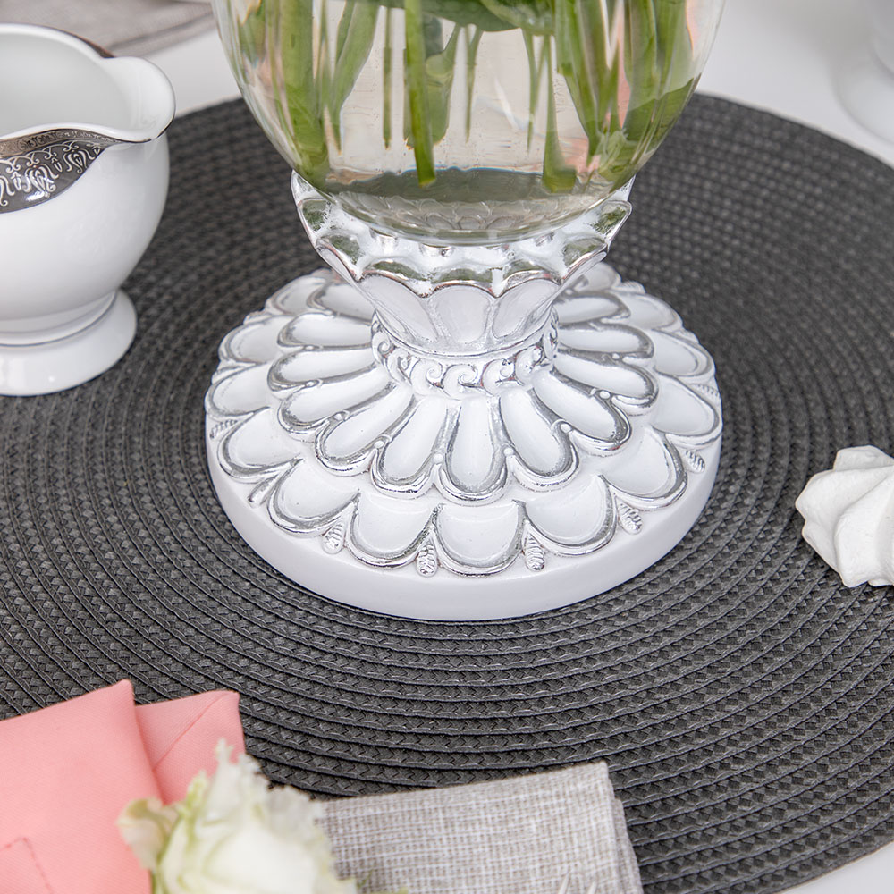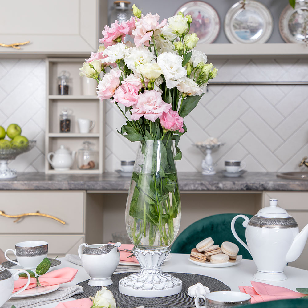 Ваза – это обязательное обрамление для цветочной композиции. В красивой, эксклюзивной вазе для цветов фабрики BOGACHO и букет звучит иначе. В сочетании с плавными линиями и эксклюзивным дизайном цветы будут смотреться великолепнее и богаче. Основное предназначение вазы для цветов не только насыщать цветы влагой, но и украшение для дома, привносить в помещение уют, комфорт, эстетику. Сама по себе ваза стеклянная выглядит шикарно, поэтому ее можно смело поставить на рабочем столе в кабинете или на кухне дома. Ваза декоративная добавит «изюминку» в ваш интерьер и украсит любую комнату Вашего дома.Ваза для интерьера будет великолепно смотреться с как с живыми, так и с искусственными цветами, ваза для сухоцветов. Ваза настольная эффектно выглядит и гармонично вписывается как в домашнюю, так и в рабочую обстановку с любым интерьером.Для защиты стола от царапин, мы установили накладки из мягкой ткани, препятствующая истиранию поверхности.Ваза на ножке завернута в воздушно - пузырчатую пленку, ложемент и надежно упакована в коробку из гофрированного картона, поэтому данный аксессуар для интерьера приедет к вам не поврежденным. Любите, чтобы интерьер был в едином стиле? Присмотритесь к продукции BOGACHO, которая будет гармонично сочетаться друг с другом. Каждый может выбрать из широкого ассортимента наших декоративных ваз идеальный аксессуар для дома.Не рекомендуем мыть в посудомоечной машине, так как есть риск появления микротрещин.