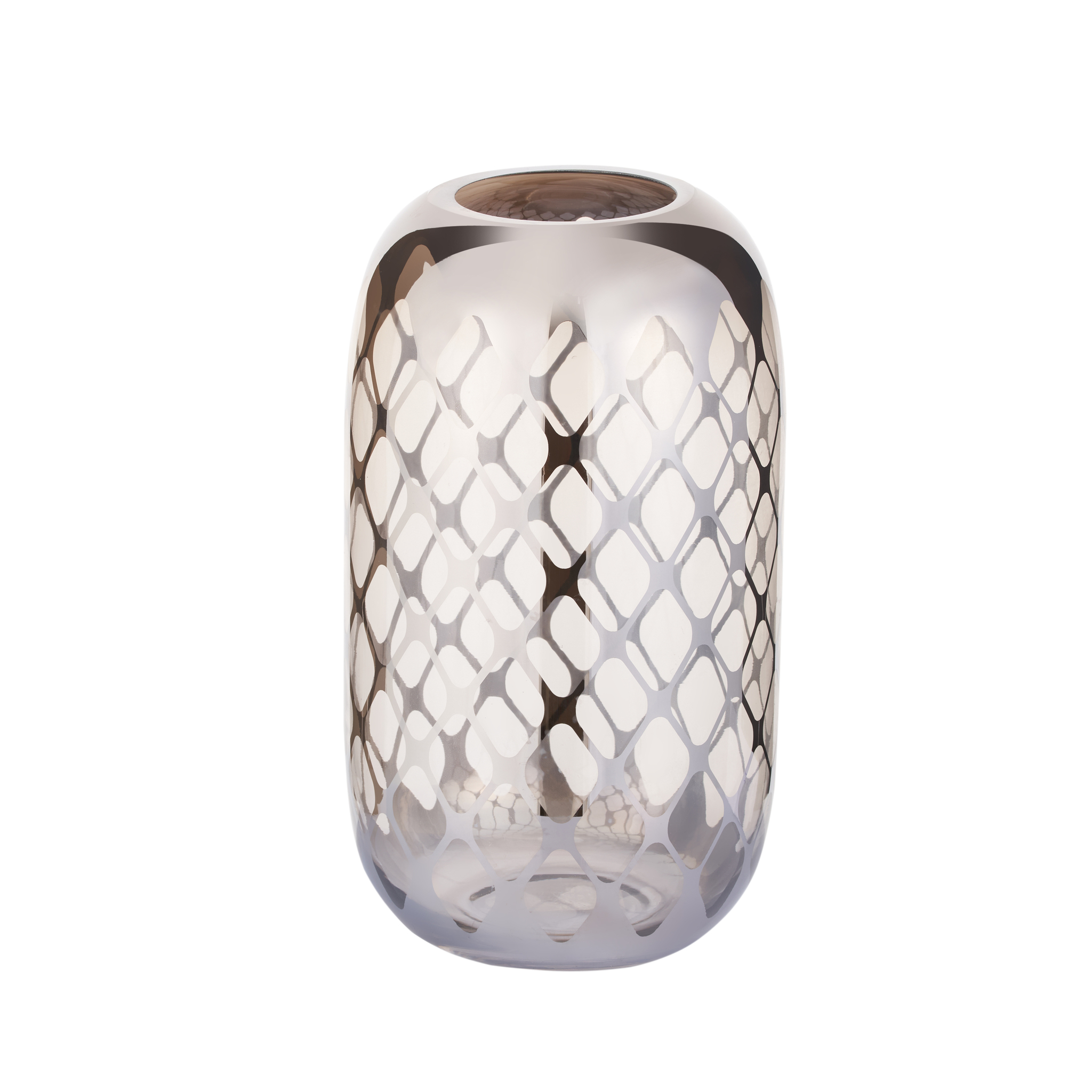 Ваза для цветов GIPFEL CELL 40077. Диаметр вазы 13 см, высота 27 см. Ваза сделана из прозрачного стекла с рисунком в виде сот цвета розового золота.