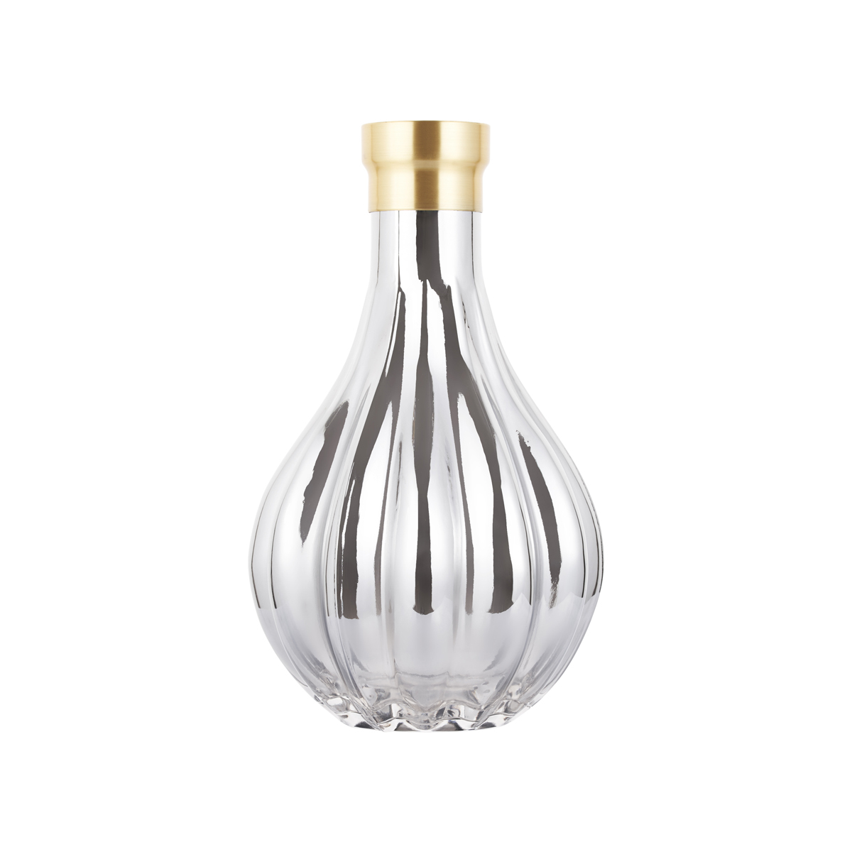 Ваза для цветов Gipfel PEAR 40089. Диаметр вазы 16 см, высота 27 см. Имеет форму сосуда с волнистой поверхностью, сужающегося кверху. Ваза сделана из стекла с серебристым напылением. Узкое горлышко золотого цвета. Подойдет для цветов на длинных тонких ножках, таких как розы или хризантемы. Диаметр горлышка 6 см, диаметр отверстия 3,5 см.