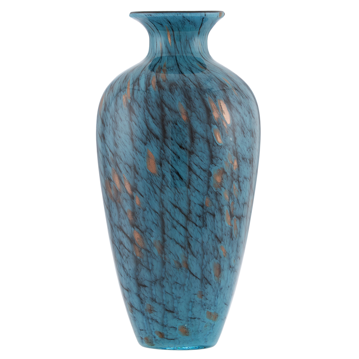У вазы Gipfel Topaz продуманный и искусно выполненный дизайн: фактурный рисунок на небесно-синем фоне, напоминающий драгоценный камень топаз, украшенный золотом и глиттером.