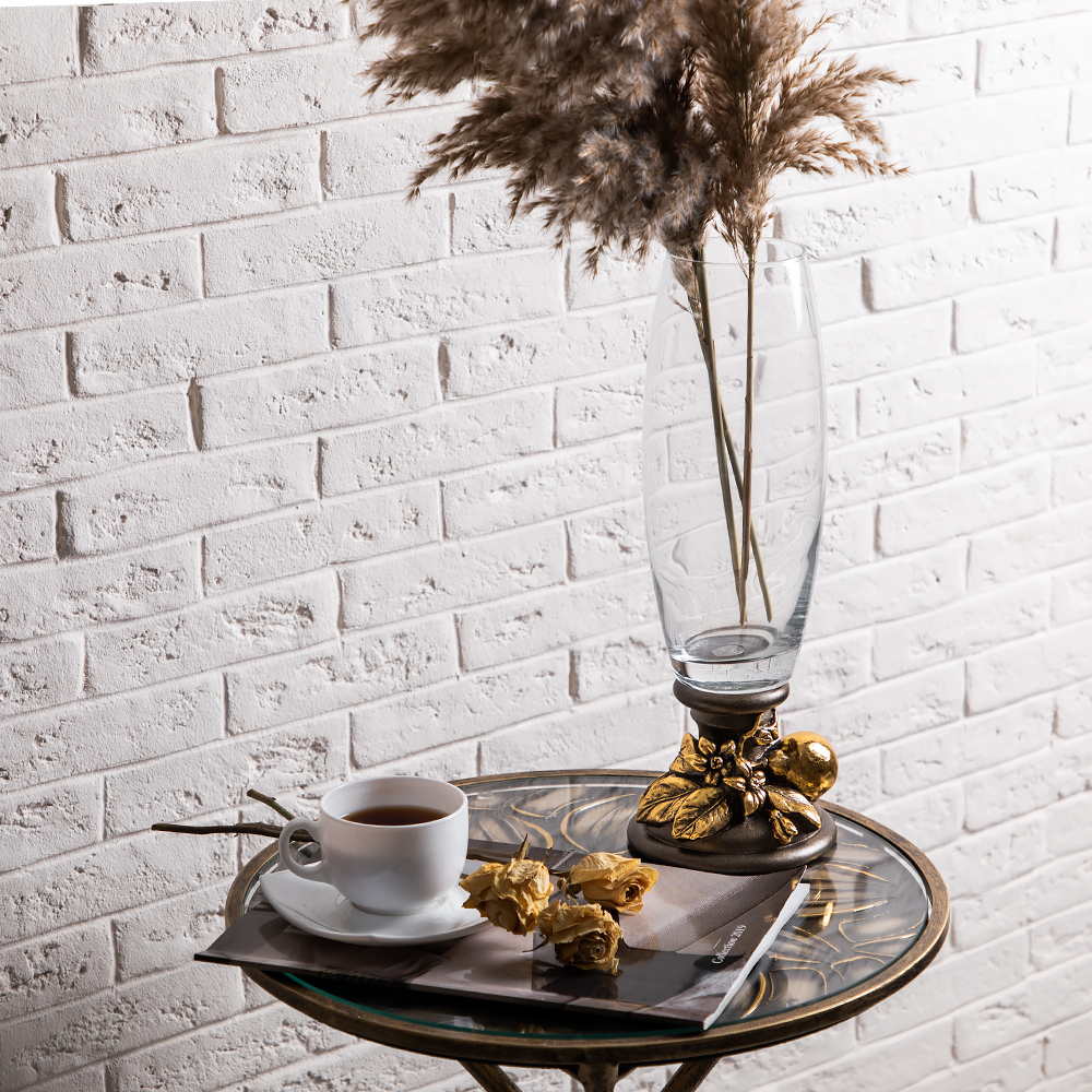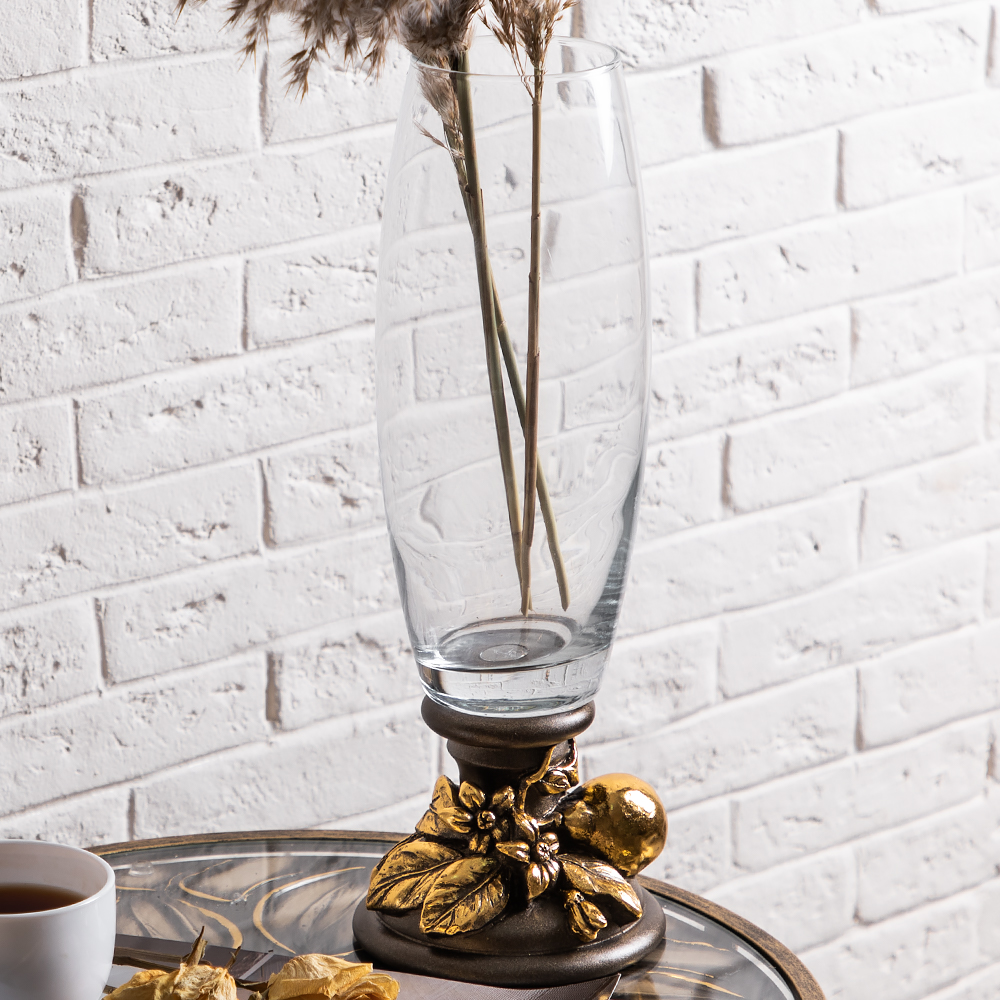 Классическая форма вазы Лайм Дженоа. Бронзовый цвет и необычное основание на широкой подставке привлекают внимание всех, кто видит интерьерные вазы BOGACHO. Эклектичный ансамбль придаёт изделию эксклюзивный шарм.Добавьте благородства своему интерьеру в классическом или современном стиле.Подставка вазы изготовлена из натурального коелгинского мрамора, отшлифована и патинирована вручную.