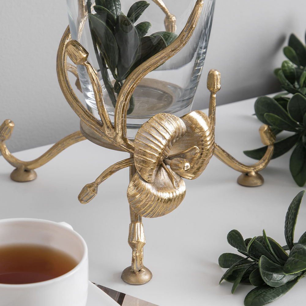 Классическая форма вазы Орхидея Найс. Кремововый цвет и необычное основание на широкой подставке привлекают внимание всех, кто видит интерьерные вазы BOGACHO. Эклектичный ансамбль придаёт изделию эксклюзивный шарм.Добавьте благородства своему интерьеру в классическом или современном стиле.Подставка вазы изготовлена из легированной стали, отшлифована и патинирована вручную.