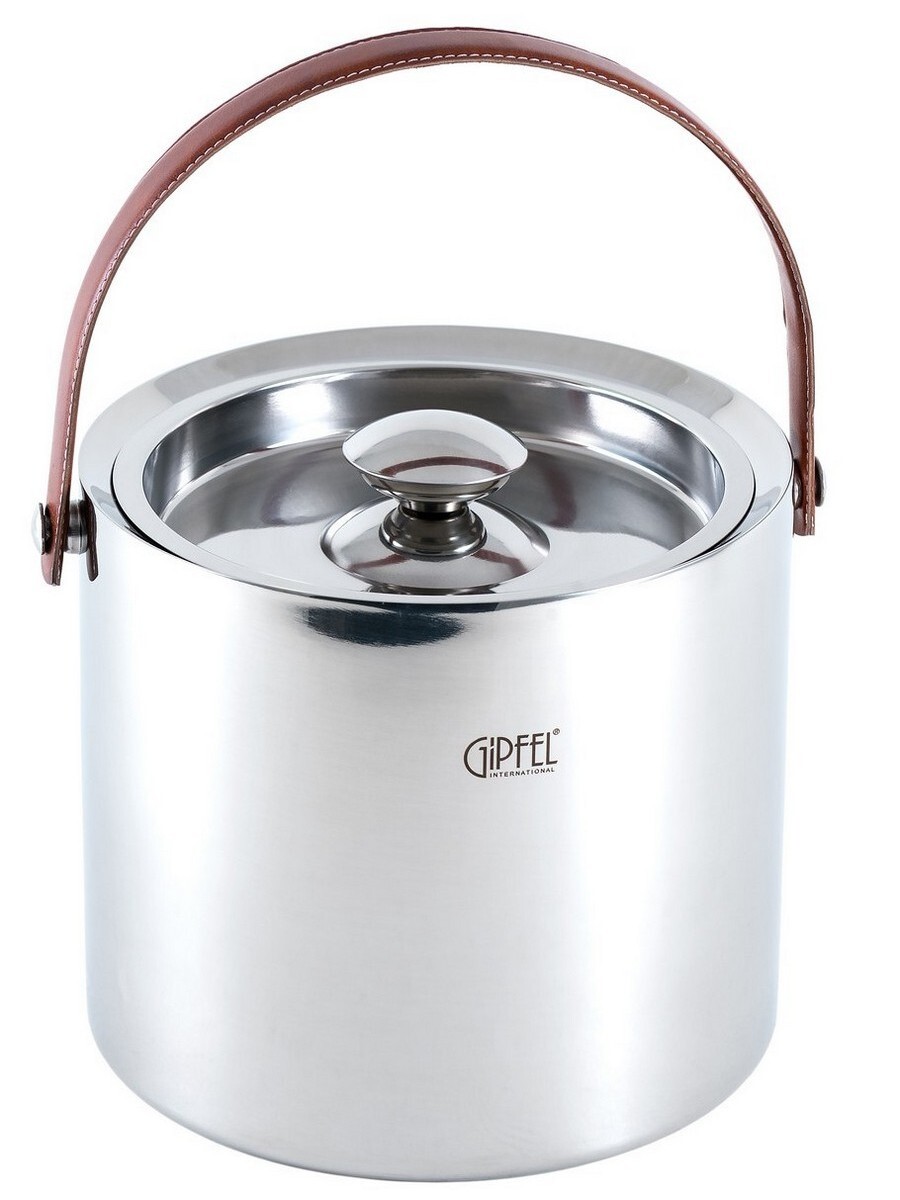 Ведро для льда Gipfel 2124. Размеры ведра 19х18,5 см. В комплекте идет крышка. Ведро прекрасно подойдет для сервировки праздничного стола: в нем презентабельно смотрится шампанское или бутылка белого вина. Материал: нержавеющая сталь 304, искусственная кожа.