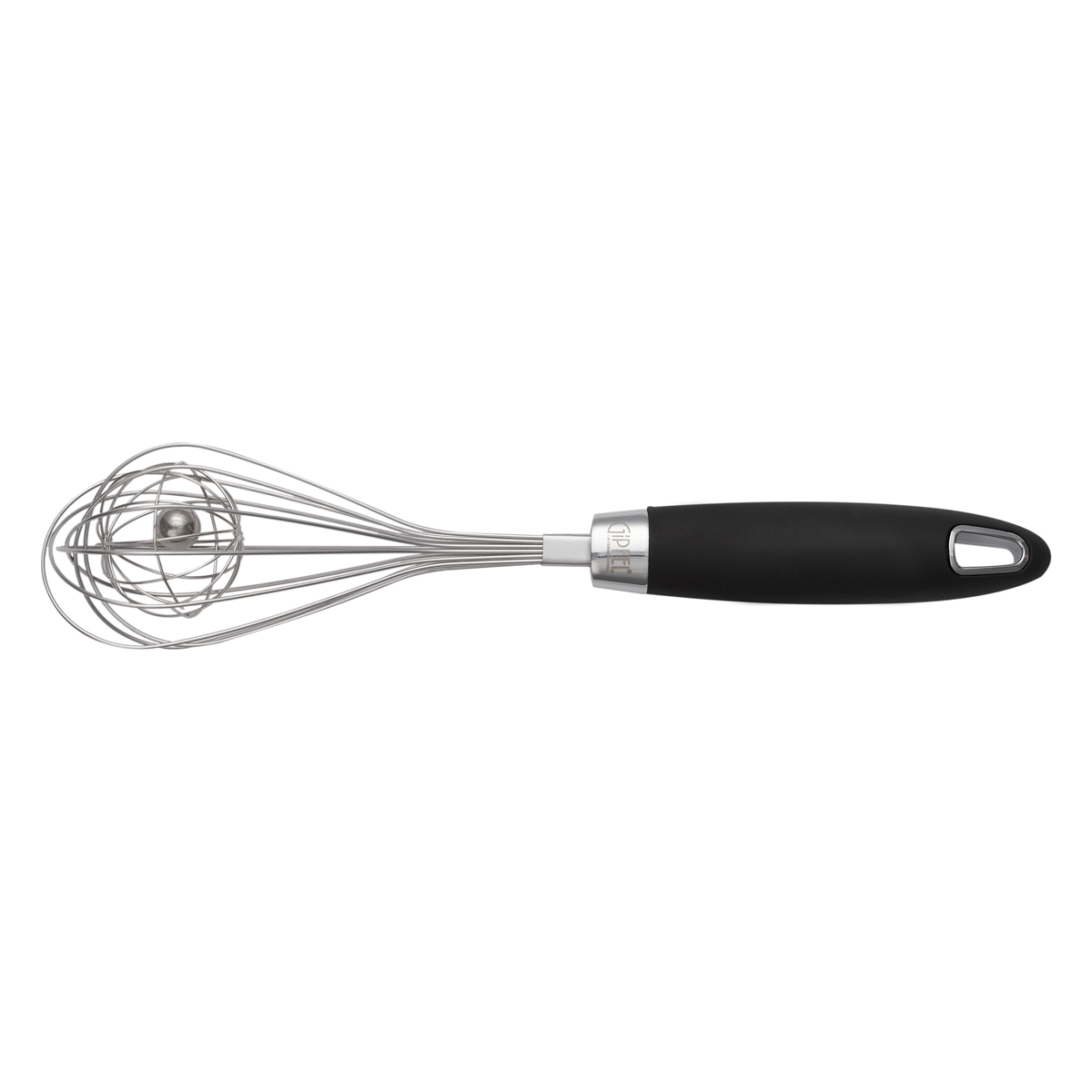 Венчик GIPFEL MONTEGO 9316 длиной 30см. Рабочая поверхность размером 6х16см. Материал: нержавеющая сталь, пластик, термопластичная резина, цинковый сплав.