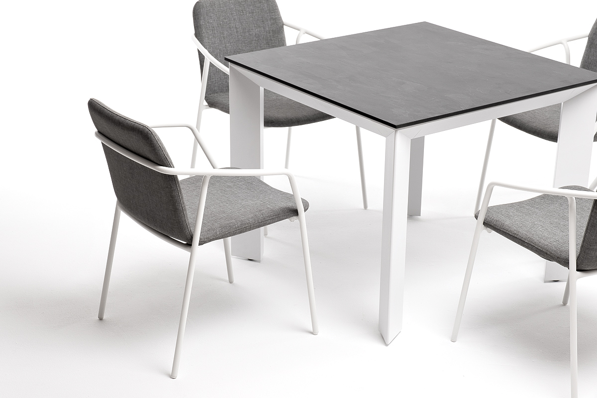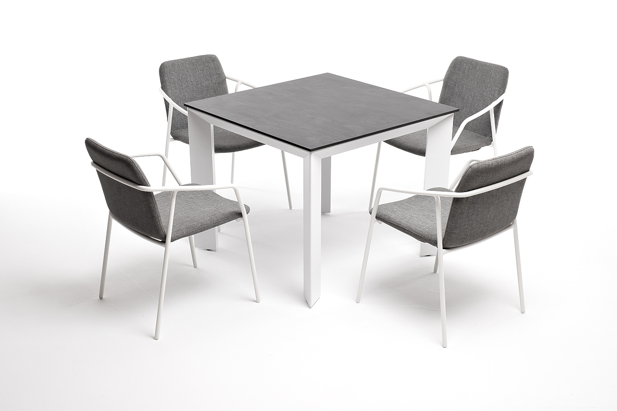 - Стол «Венето» со столешницей из HPL-пластика, размер столешницы - 900×900 мм, цвет - «серый гранит». Высота стола - 750 мм