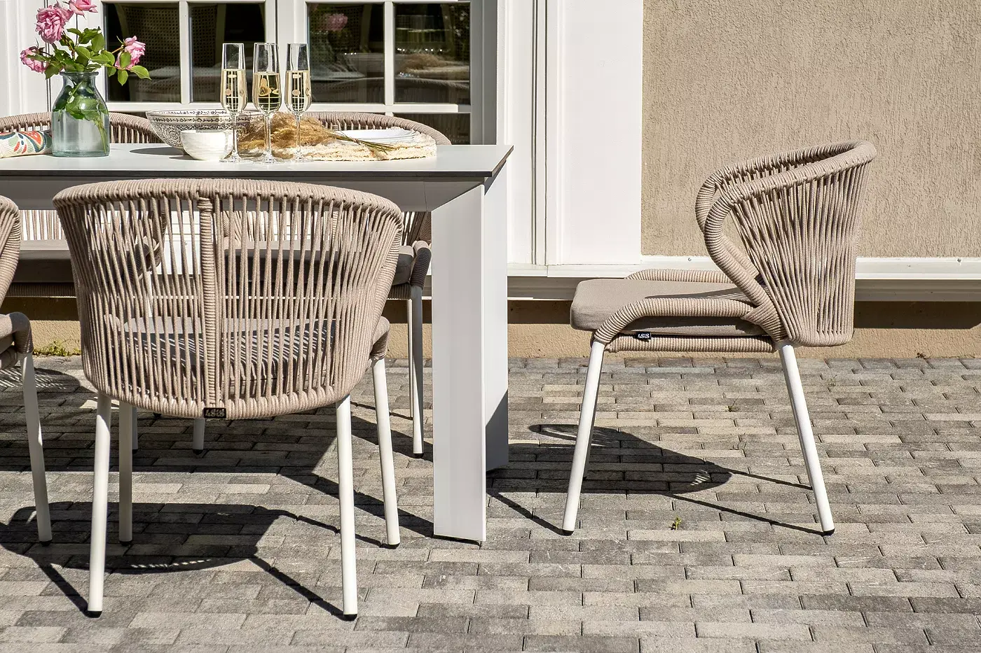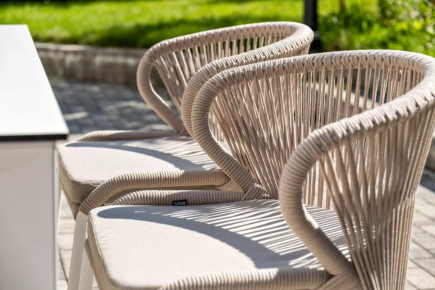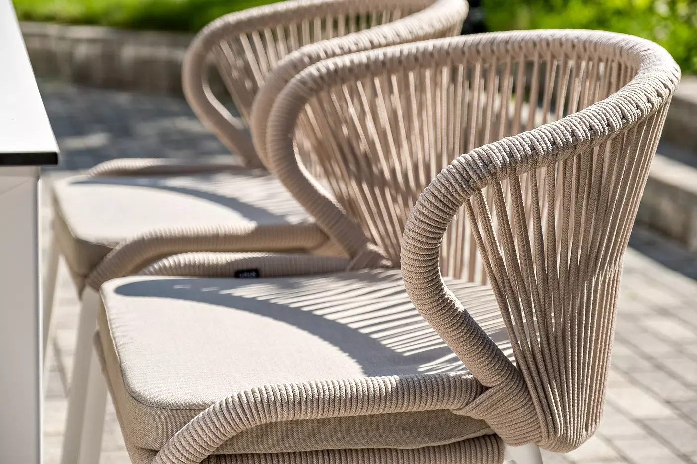 Стулья «Милан» выполнены из роупа бежевого цвета, который гармонируют с общим дизайном комплекта. Размер каждого стула составляет 570×620×795 мм. Каркас из алюминия придает стульям легкость и прочность, а порошковое окрашивание защищает металл от коррозии и увеличивает срок службы мебели.