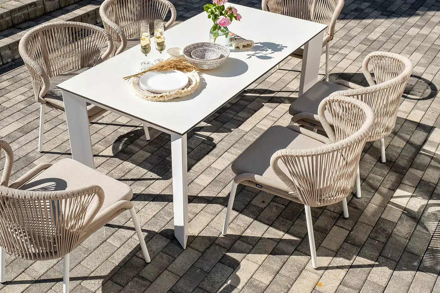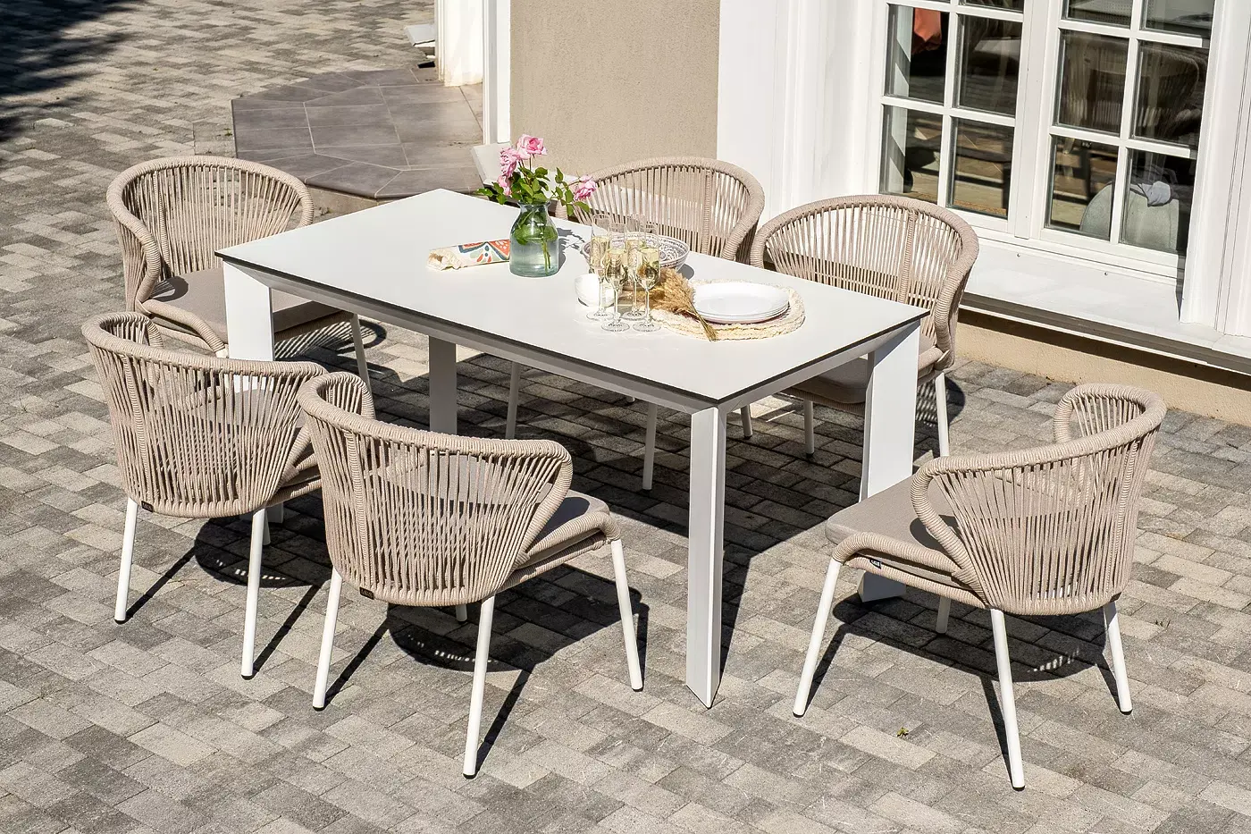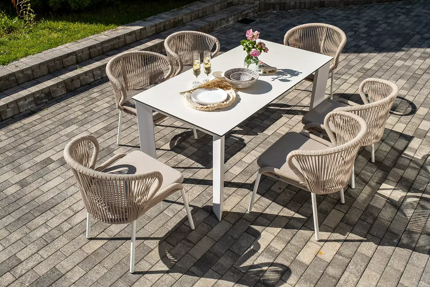 Обеденная группа «Венето» предназначена для комфортного размещения 6 персон и станет отличным дополнением к вашей территории для проведения трапезы с друзьями или семьей. Комплект из стола «Венето» и 6 стульев «Милан» выполнен в едином стиле, комбинируя качественные материалы и современный дизайн.