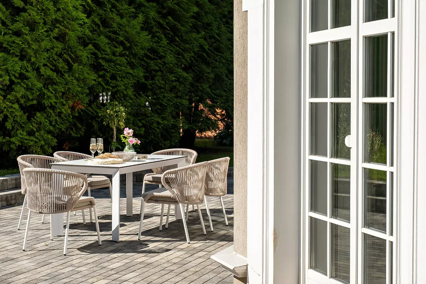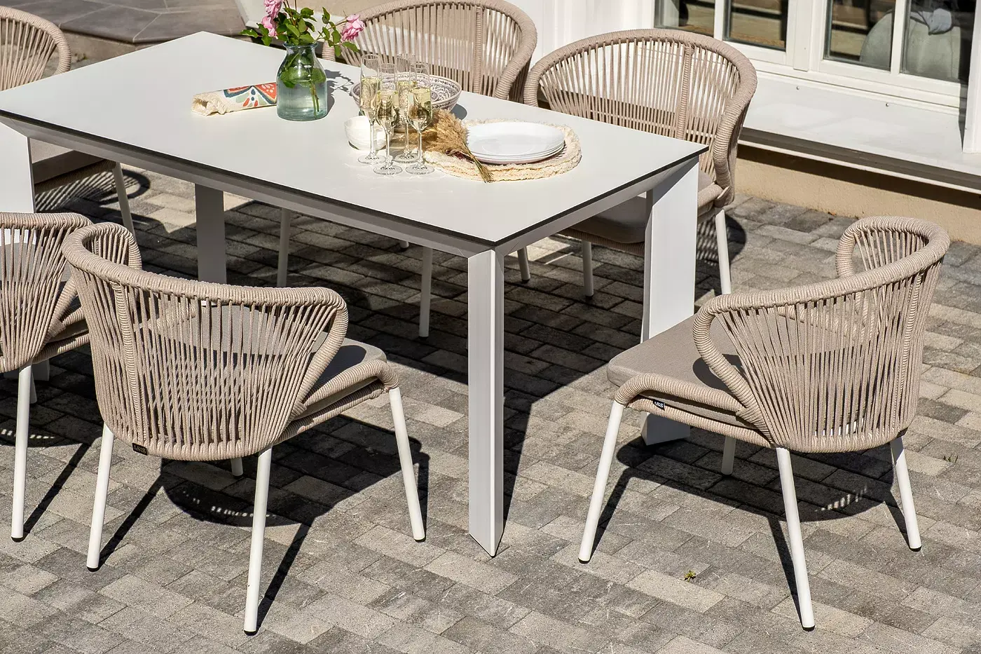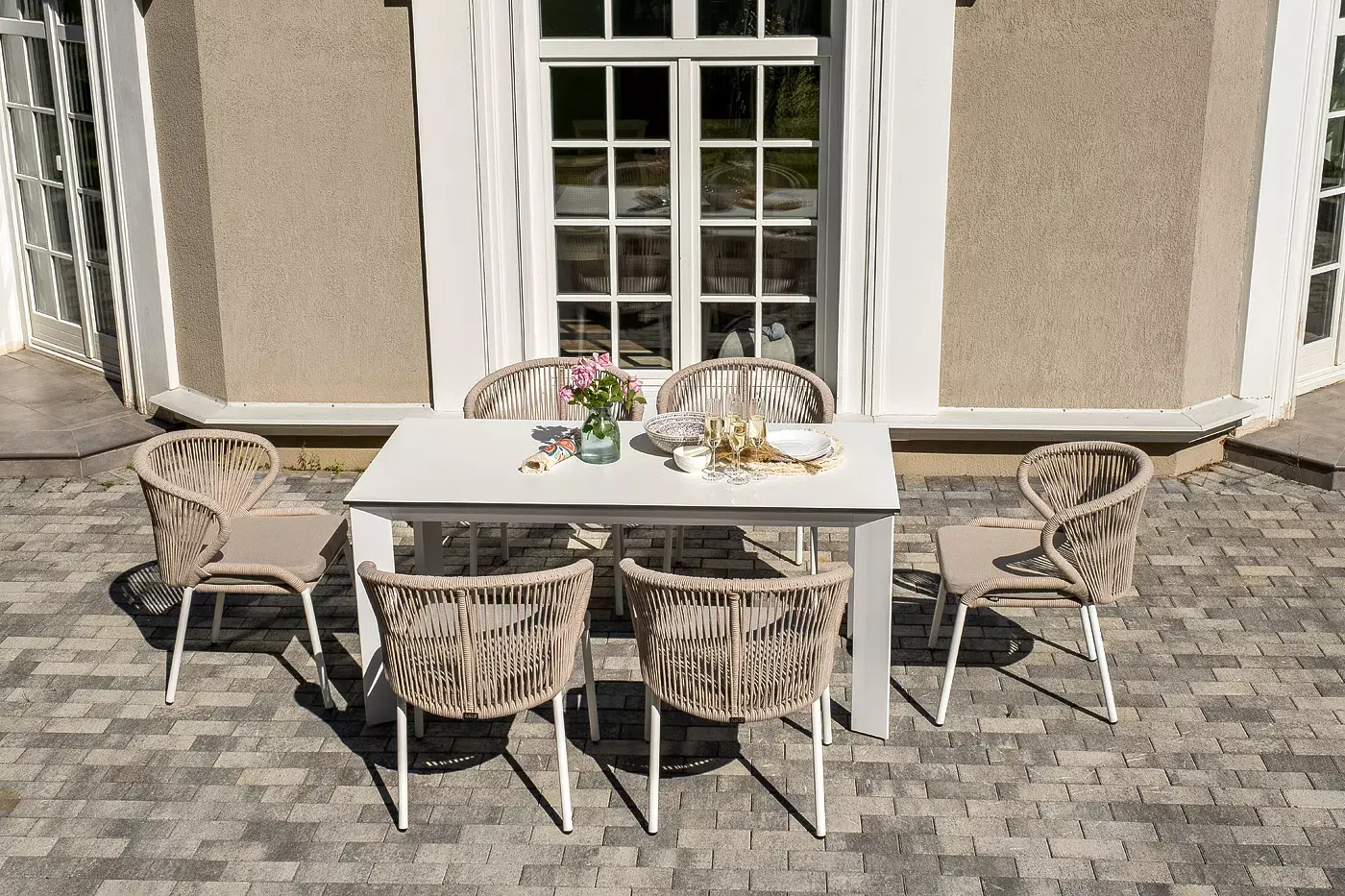 Обеденная группа «Венето» предназначена для комфортного размещения 6 персон и станет отличным дополнением к вашей территории для проведения трапезы с друзьями или семьей. Комплект из стола «Венето» и 6 стульев «Милан» выполнен в едином стиле, комбинируя качественные материалы и современный дизайн.