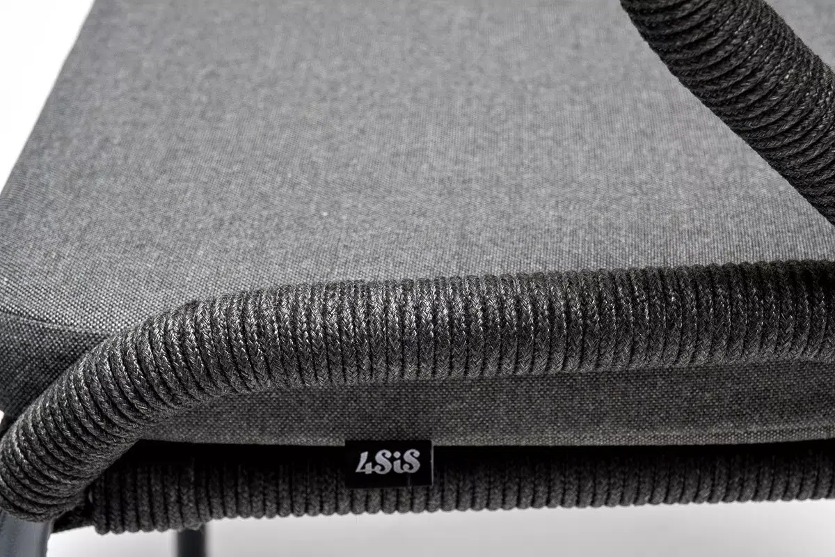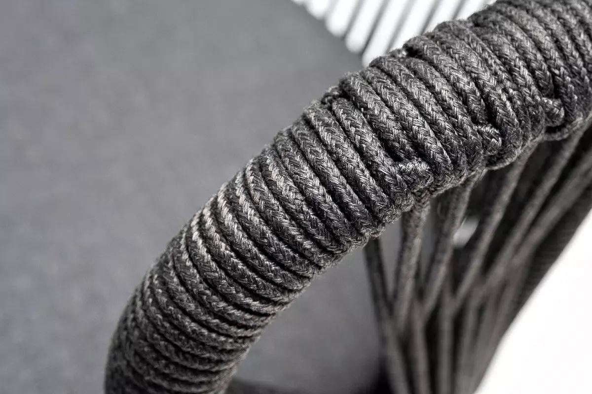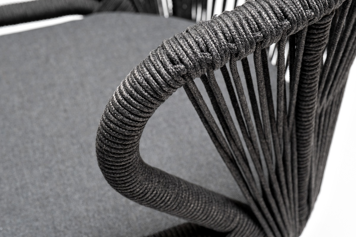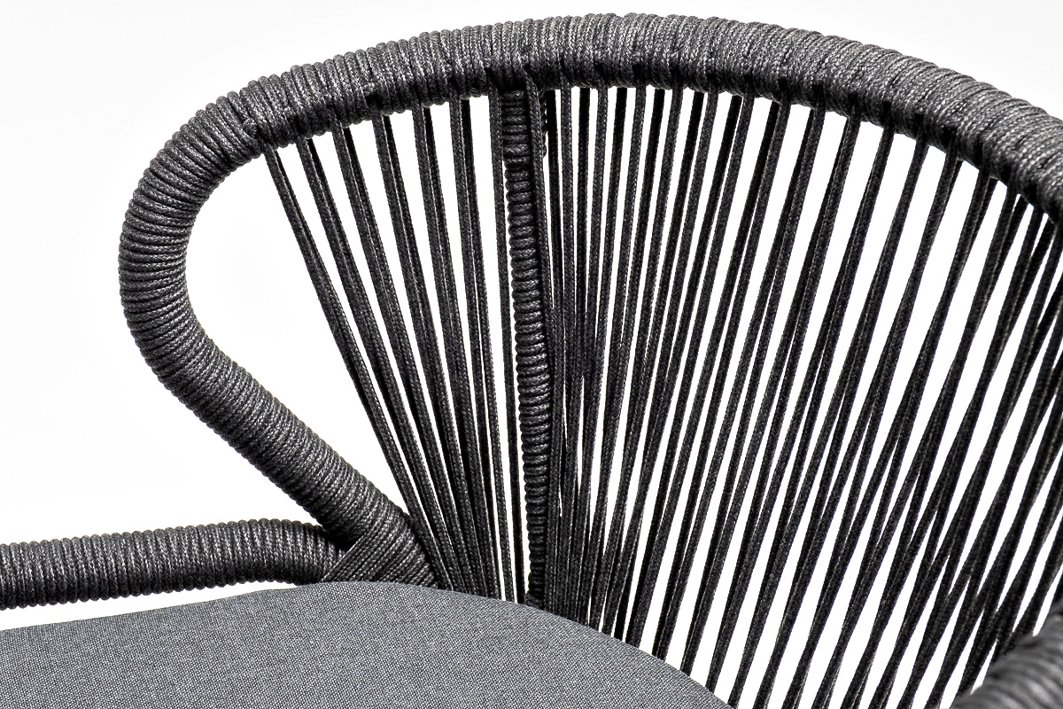 Стулья «Милан» выполнены из роупа темно-серого цвета, который гармонируют с общим дизайном комплекта. Размер каждого стула составляет 570×620×795 мм. Каркас из алюминия придает стульям легкость и прочность, а порошковое окрашивание защищает металл от коррозии и увеличивает срок службы мебели.