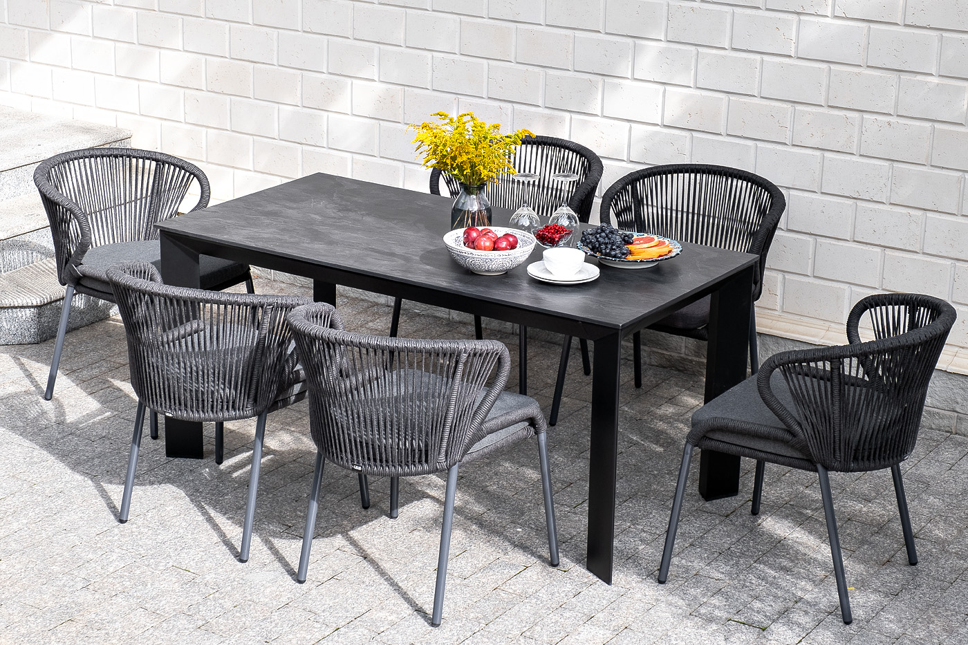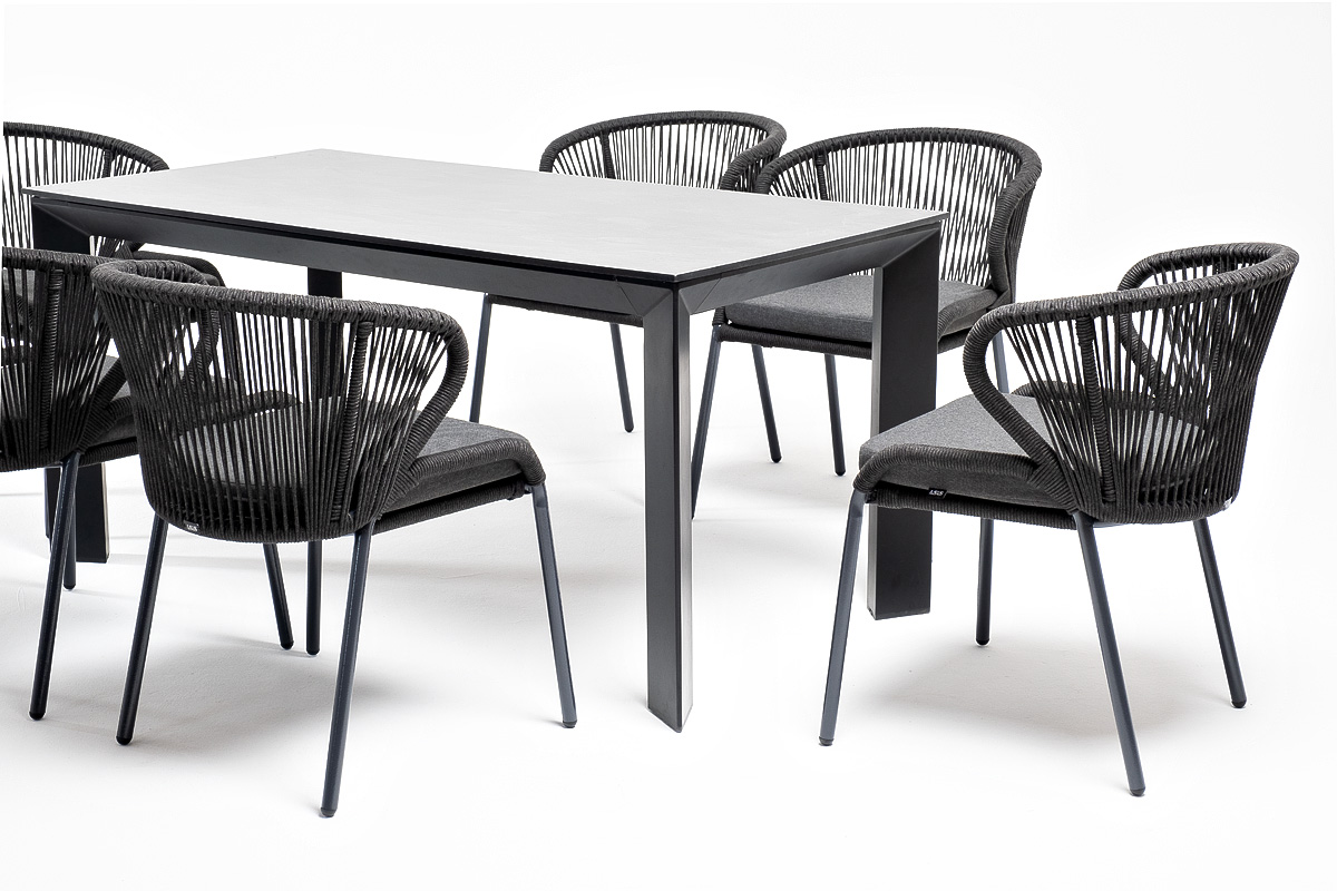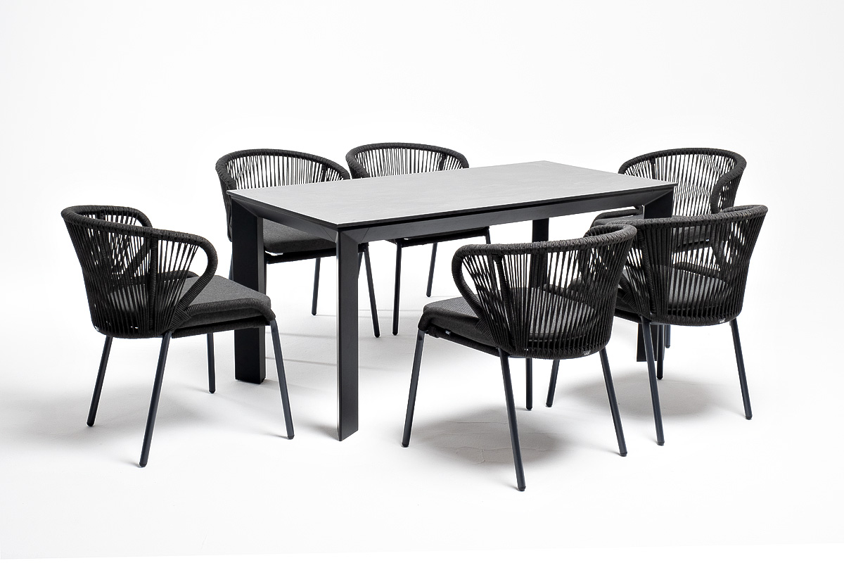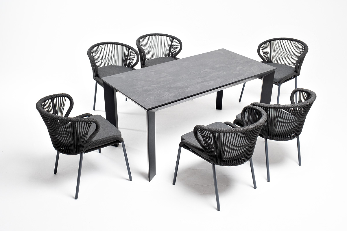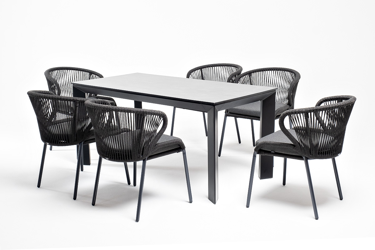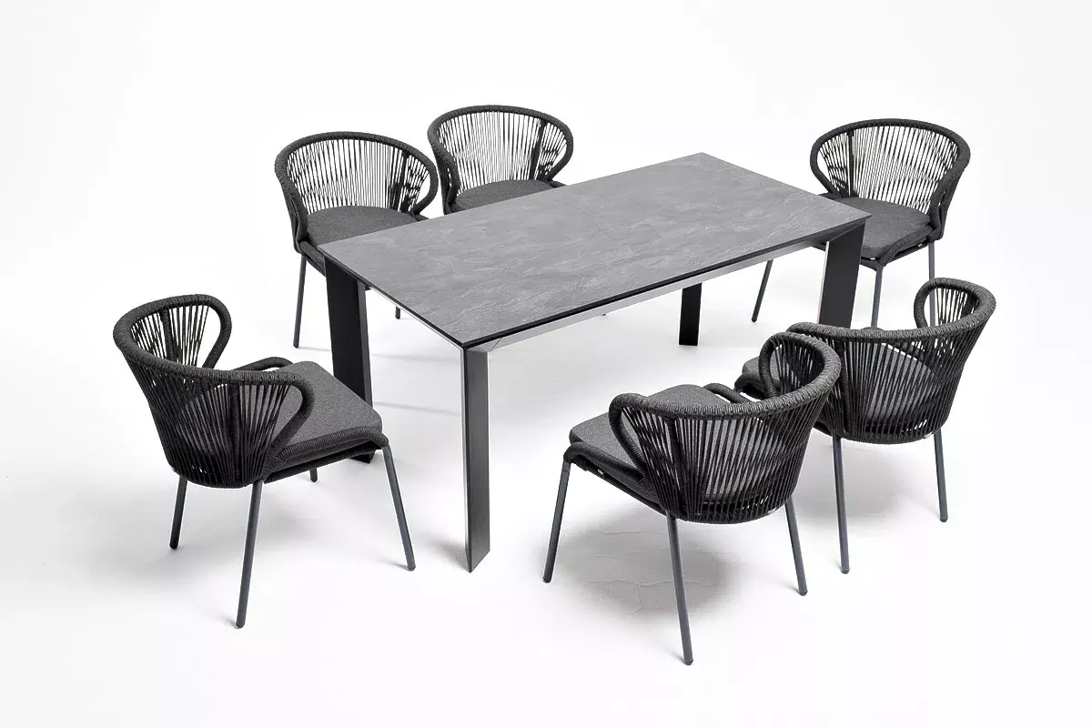 Обеденная группа «Венето» предназначена для комфортного размещения 6 персон и станет отличным дополнением к вашей территории для проведения трапезы с друзьями или семьей. Комплект из стола «Венето» и 6 стульев «Милан» выполнен в едином стиле, комбинируя качественные материалы и современный дизайн.