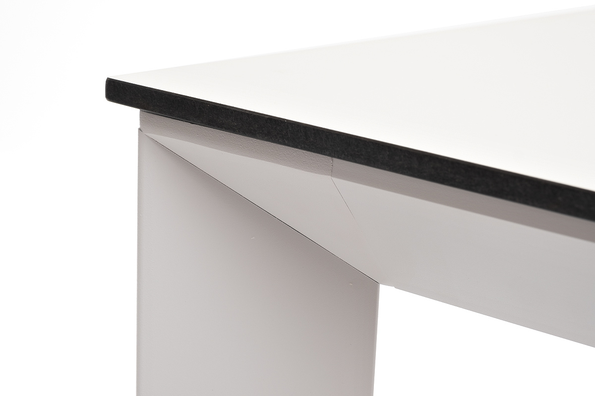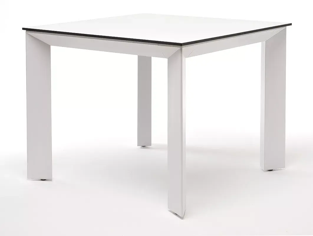 Столешница выполнена из современного высококачественного монолитного компакт-пластик HPL, толщиной 12 мм в цвете молочный. Материал устойчив к высоким температурам, попаданию влаги и может использоваться как в помещении, так и на открытом пространстве. Подстолье изготовлено из крашеного алюминия белого цвета.