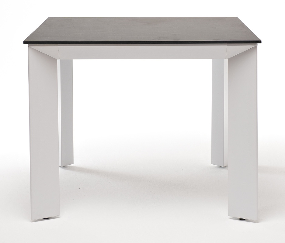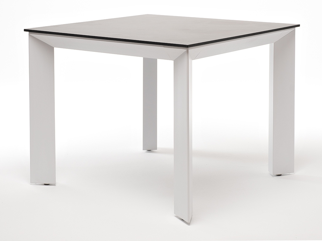 Столешница выполнена из современного высококачественного монолитного компакт-пластик HPL, толщиной 12 мм в цвете «серый гранит». Материал устойчив к высоким температурам, попаданию влаги и может использоваться как в помещении, так и на открытом пространстве. Подстолье изготовлено из крашеного алюминия белого цвета.