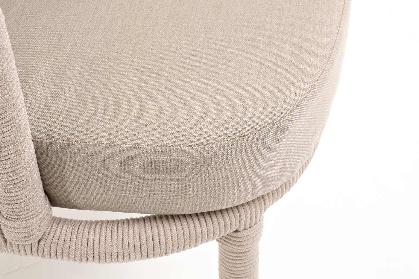 "Верона" кресло плетеное из роупа, каркас алюминий белый муар, роуп бежевый круглый, ткань бежевая 052