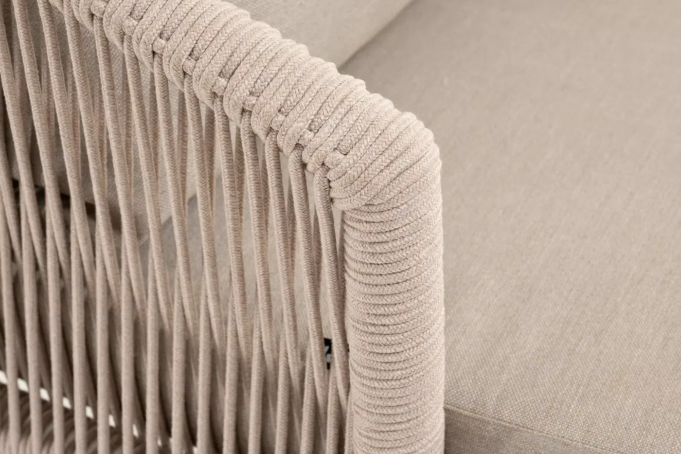 Плетеное кресло «Верона» с подушками в комплекте. Кресло имеет алюминиевый каркас, окрашенный порошковой краской в белый цвет. Боковины каркаса вручную оплетены роупом - эластичными синтетическими лентами, изготовленными из высокопрочных полиэфирных волокон. Цвет оплетки - бежевый. На ножках кресла идут дубовые наконечники (заглушки). Подушки со съёмными чехлами, которые обработаны влагоотталивающей пропиткой. Материал - 100% полиэстер, плотностью 300гр/м2. Размер садового кресла: 760x840х730 мм.
