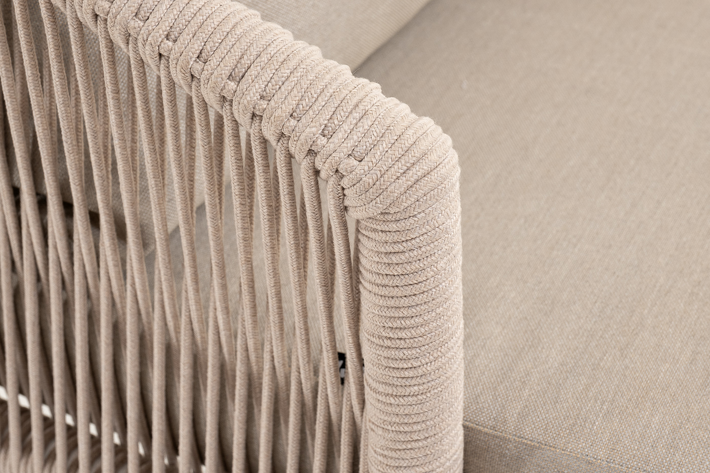 "Верона" кресло плетеное из роупа, каркас алюминий белый муар, роуп бежевый круглый, ткань бежевая 15052