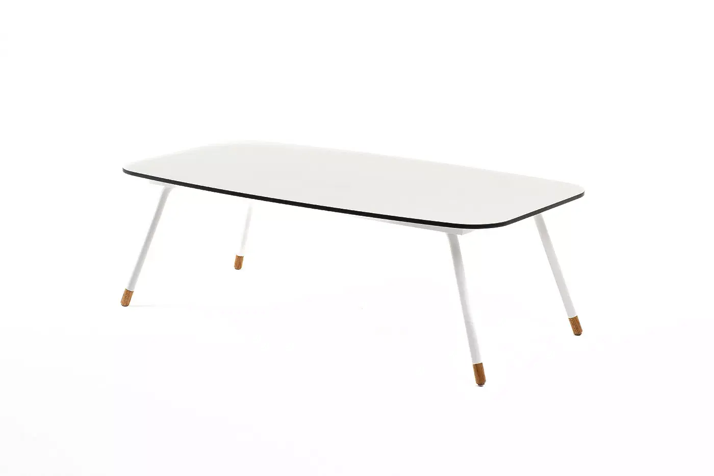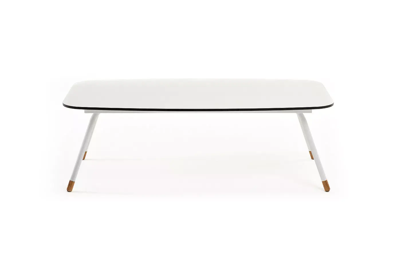 Каркас столика изготовлен из алюминия, окрашенного в белый цвет. Алюминий является легким и прочным материалом, что обеспечивает долговечность и надежность изделия. На ножках столика идут дубовые наконечники (заглушки).