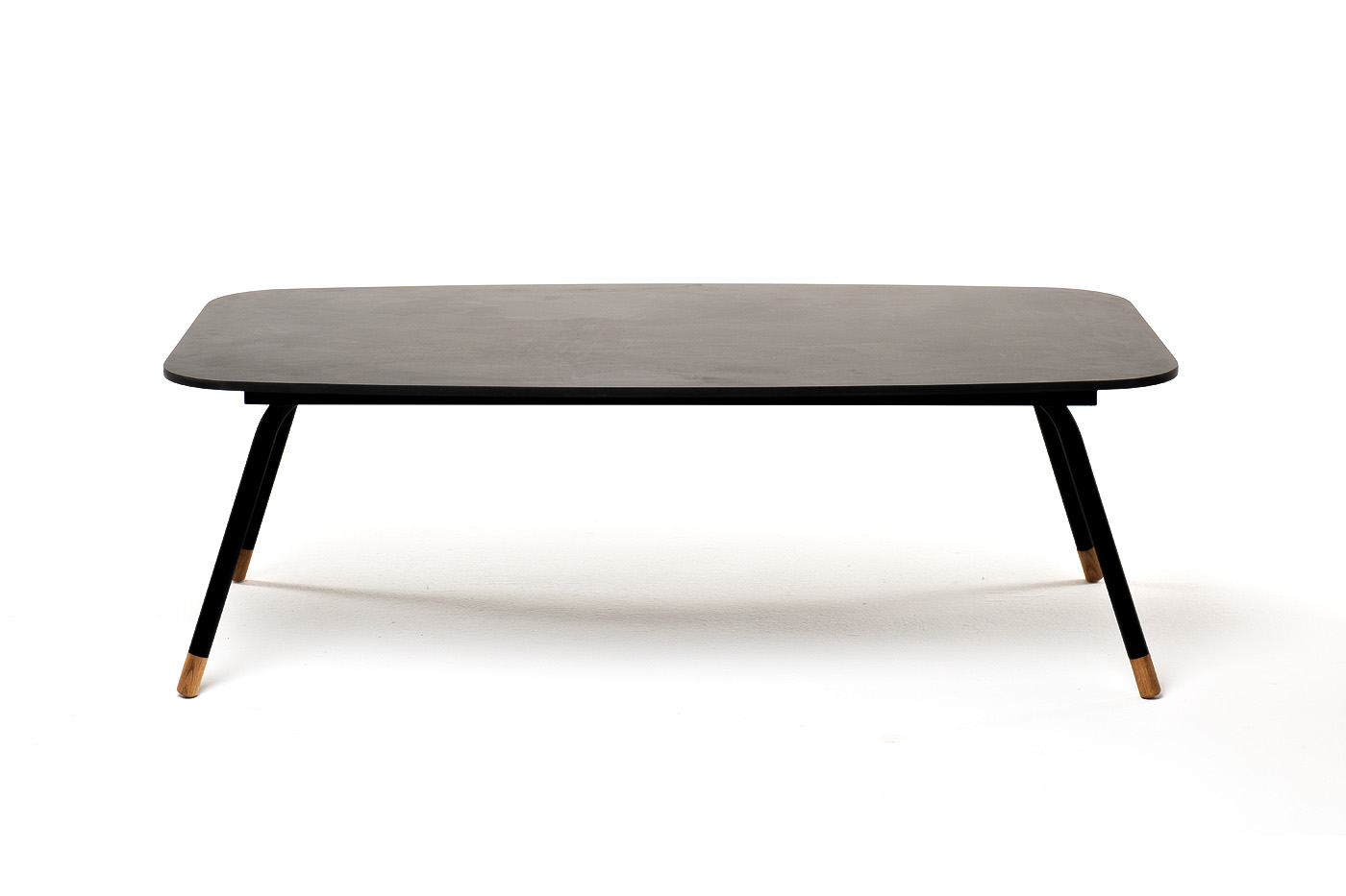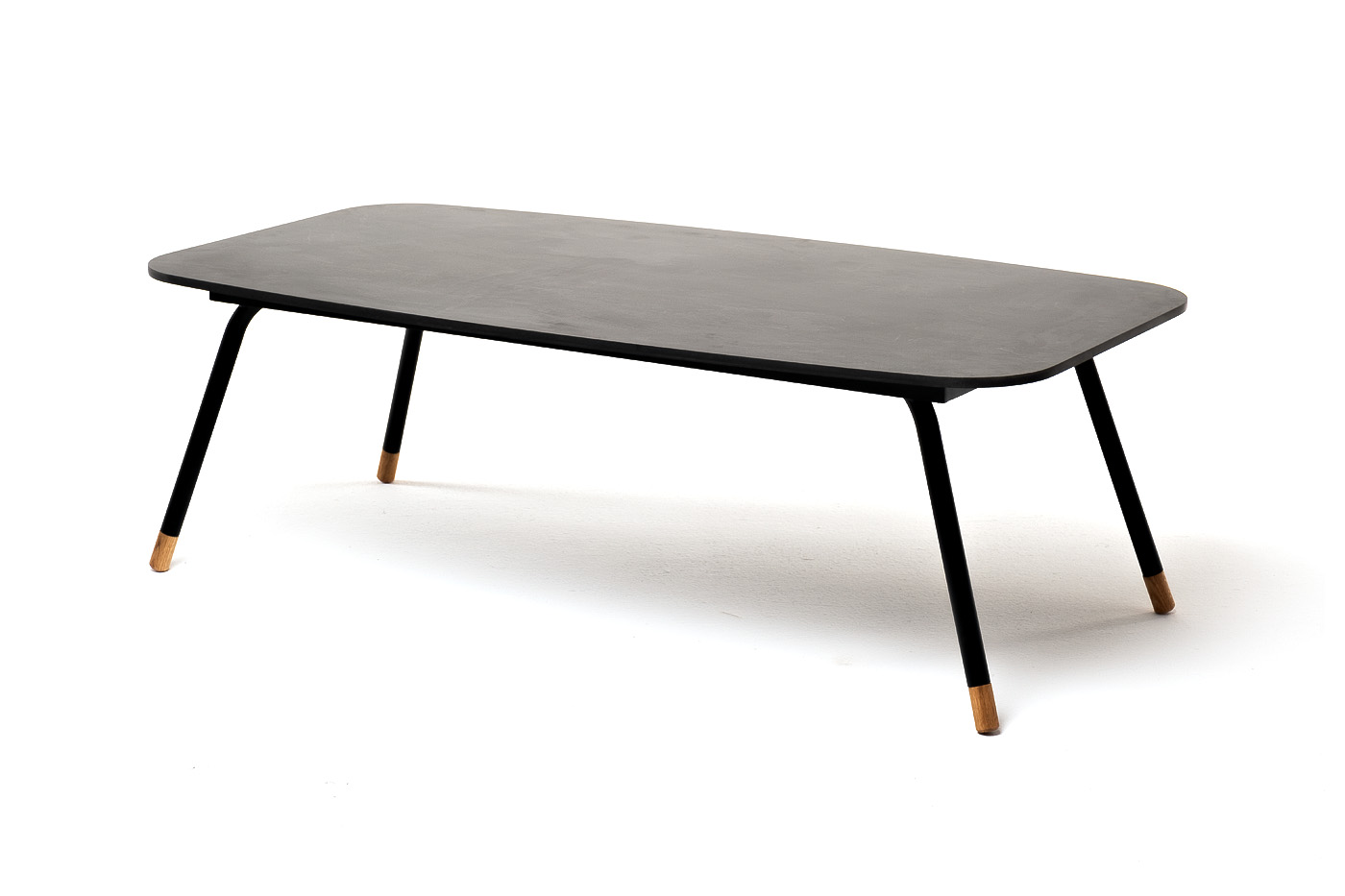 Каркас столика изготовлен из алюминия, окрашенного в черный цвет. Алюминий является легким и прочным материалом, что обеспечивает долговечность и надежность изделия. На ножках столика идут дубовые наконечники (заглушки).