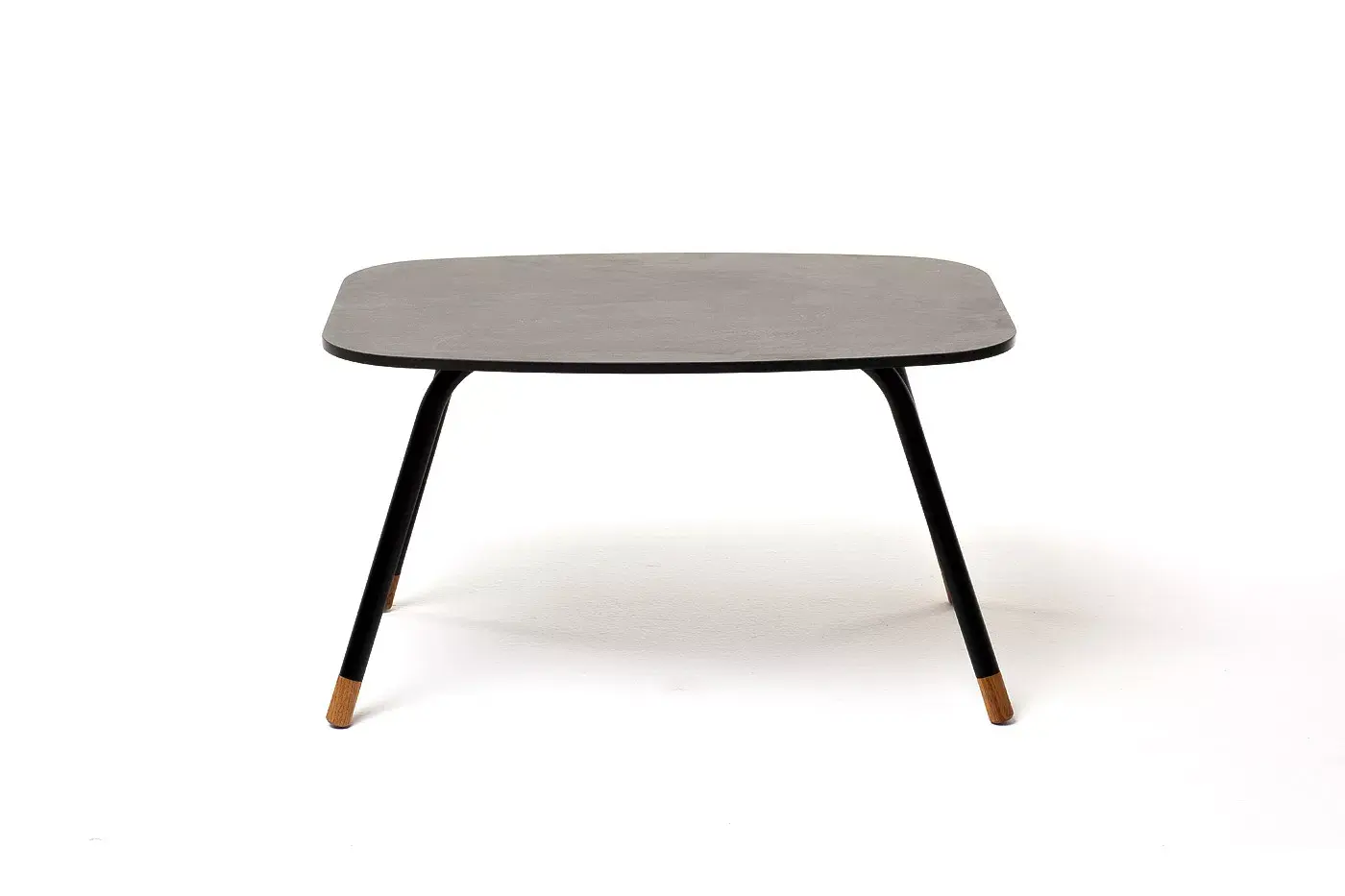 Каркас столика изготовлен из алюминия, окрашенного в черный цвет. Алюминий является легким и прочным материалом, что обеспечивает долговечность и надежность изделия. На ножках столика идут дубовые наконечники (заглушки).