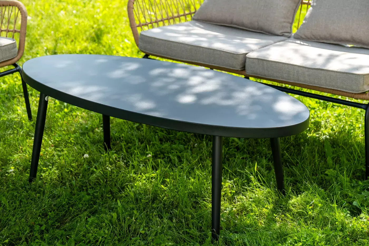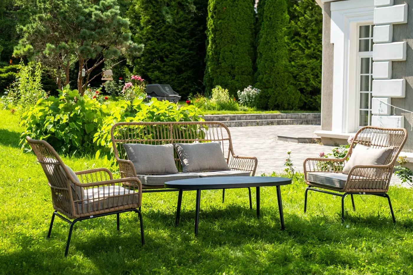 Лаунж-зона «Версаль» подходит для размещения четырех персон. За прочность конструкции отвечает стальной каркас.
