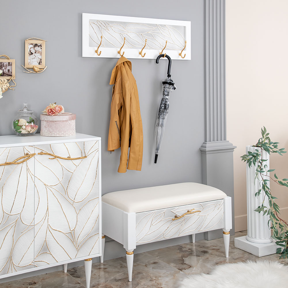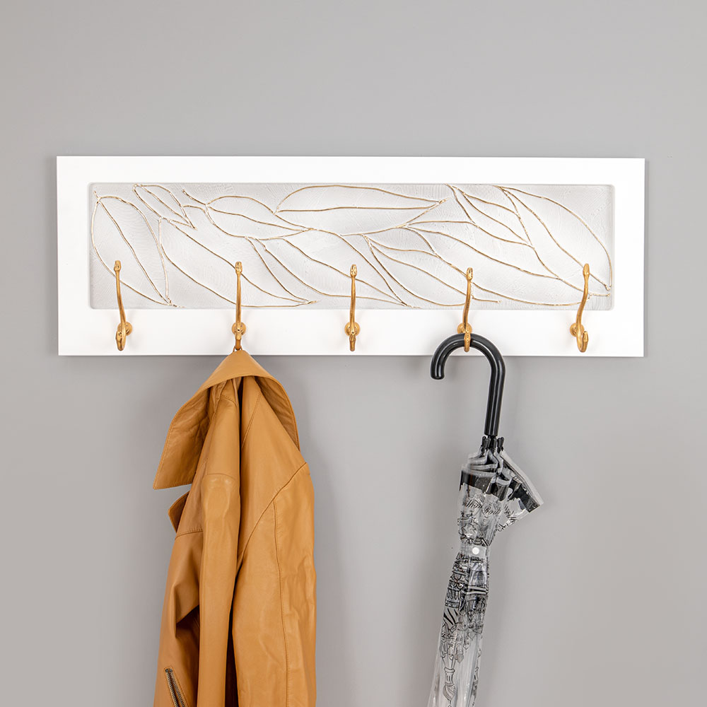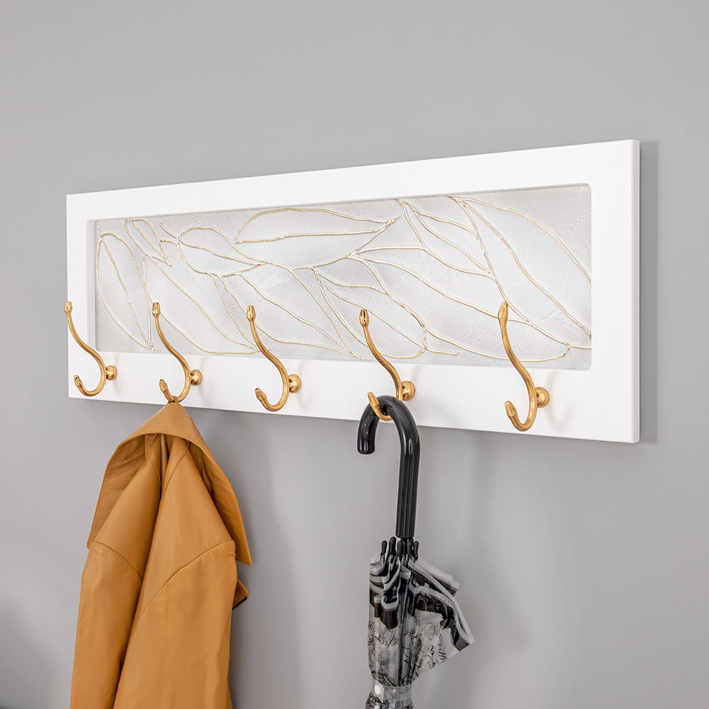 Основное назначение любой вешалки в прихожей - комфортно и компактно размещать верхнюю одежду и аксессуары. Прочный, надежный и износостойкий материал сохранит внешний вид изделия на долгие годы даже при постоянной эксплуатации. Кованые вешалки способны выдержать длительные нагрузки и большой вес тяжелой одежды. Компактность позволяет разместить предмет даже в самой малогабаритной прихожей. Настенный декор интерьера, панно на стену как кованая вешалка Монстера добавят уюта и шарма вашему дому, даче, офису, квартире. Оснащена полкой для головных уборов и шарфов. Вешалка кованая настенная Monstera Deliciosa выполнена полностью вручную методом горячей ковки, позолочена мастерами фабрики. Вешалка представлена в трех цветах: золото/серебро/бронза. В интерьере такой декор для дома выгодно оттенит любой современный стиль – лофт, скандинавский стиль, современный стиль. Гардеробная вешалка – стильное, оригинальное украшение для дома.