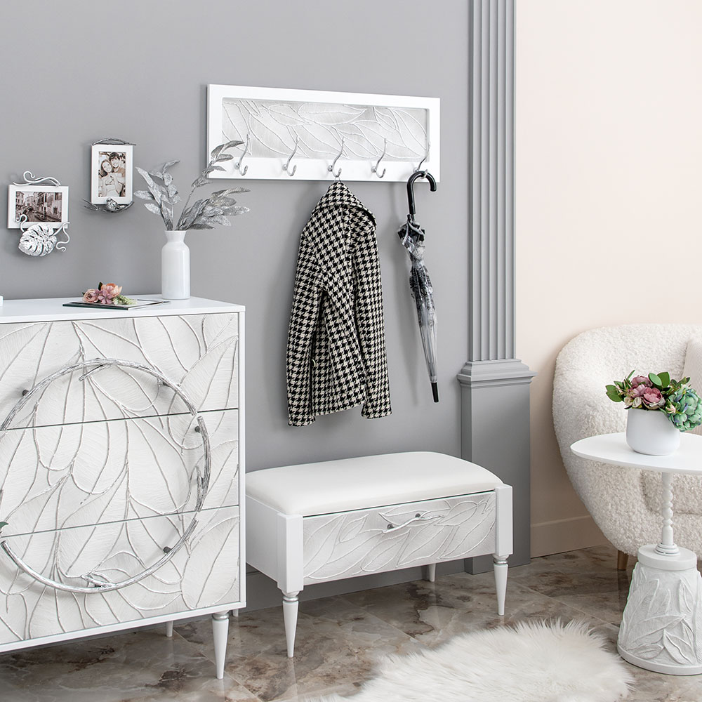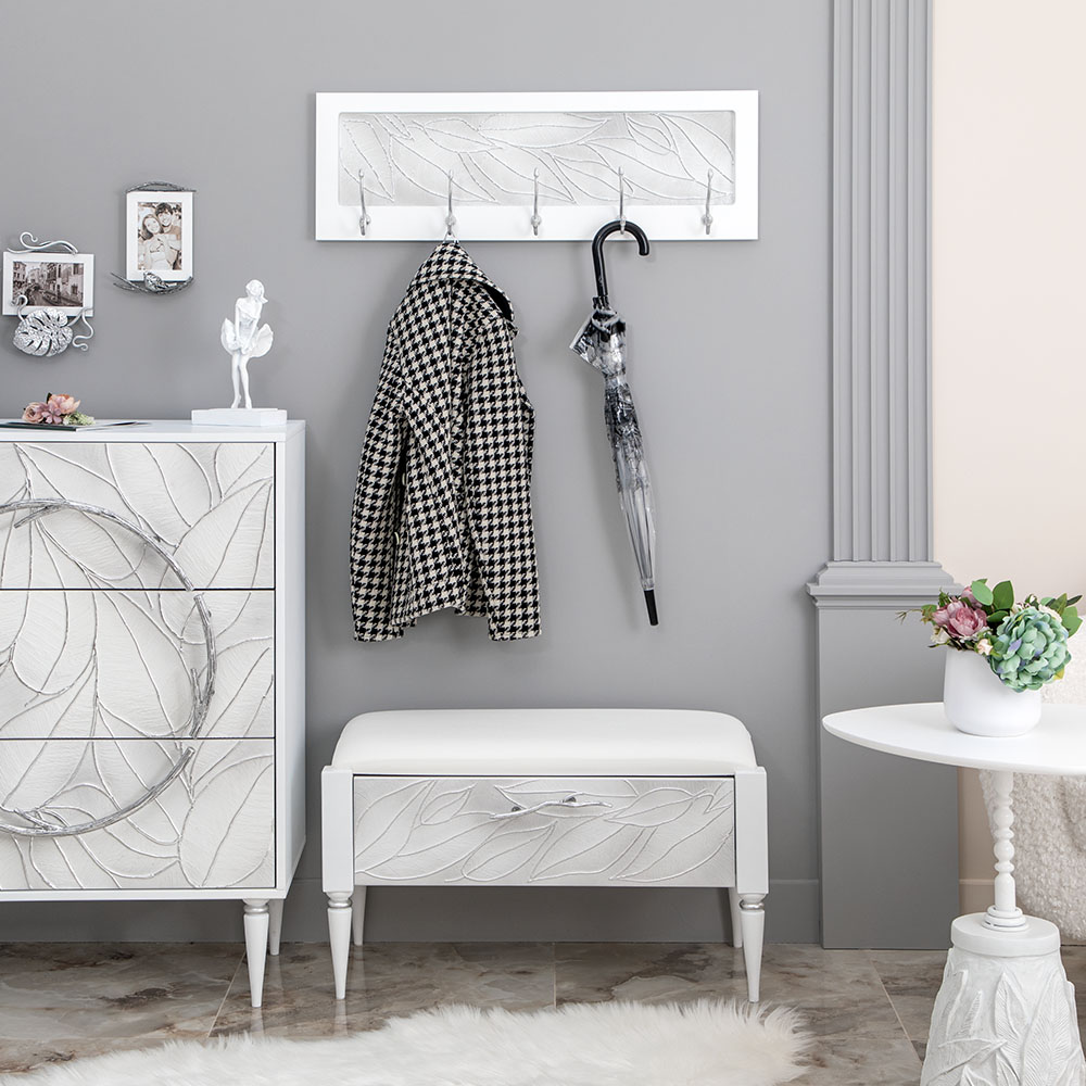Основное назначение любой вешалки в прихожей - комфортно и компактно размещать верхнюю одежду и аксессуары. Прочный, надежный и износостойкий материал сохранит внешний вид изделия на долгие годы даже при постоянной эксплуатации. Кованые вешалки способны выдержать длительные нагрузки и большой вес тяжелой одежды. Компактность позволяет разместить предмет даже в самой малогабаритной прихожей. Настенный декор интерьера, панно на стену как кованая вешалка Монстера добавят уюта и шарма вашему дому, даче, офису, квартире. Оснащена полкой для головных уборов и шарфов. Вешалка кованая настенная Monstera Deliciosa выполнена полностью вручную методом горячей ковки, позолочена мастерами фабрики. Вешалка представлена в трех цветах: золото/серебро/бронза. В интерьере такой декор для дома выгодно оттенит любой современный стиль – лофт, скандинавский стиль, современный стиль. Гардеробная вешалка – стильное, оригинальное украшение для дома.