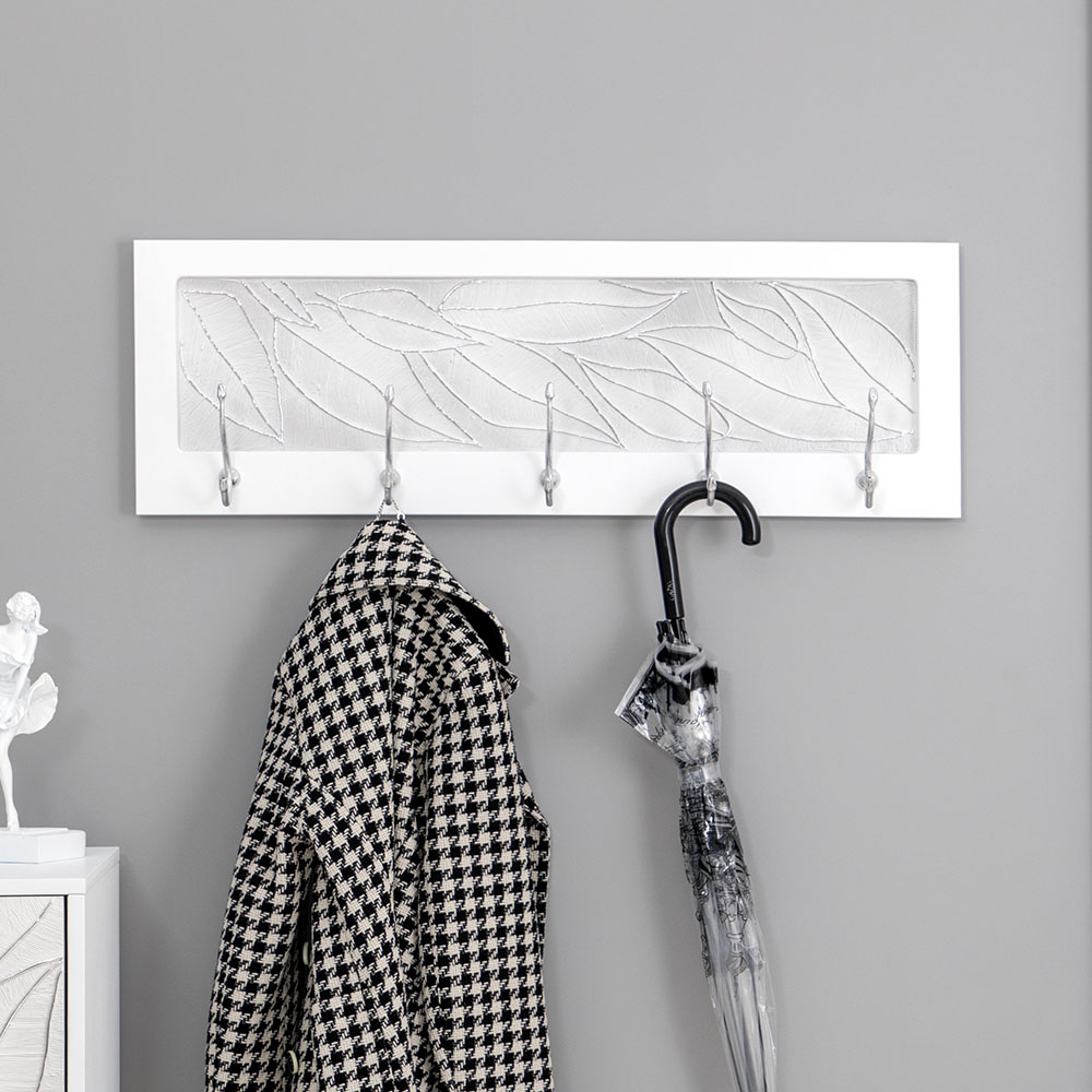 Основное назначение любой вешалки в прихожей - комфортно и компактно размещать верхнюю одежду и аксессуары. Прочный, надежный и износостойкий материал сохранит внешний вид изделия на долгие годы даже при постоянной эксплуатации. Кованые вешалки способны выдержать длительные нагрузки и большой вес тяжелой одежды. Компактность позволяет разместить предмет даже в самой малогабаритной прихожей. Настенный декор интерьера, панно на стену как кованая вешалка Монстера добавят уюта и шарма вашему дому, даче, офису, квартире. Оснащена полкой для головных уборов и шарфов. Вешалка кованая настенная Monstera Deliciosa выполнена полностью вручную методом горячей ковки, позолочена мастерами фабрики. Вешалка представлена в трех цветах: золото/серебро/бронза. В интерьере такой декор для дома выгодно оттенит любой современный стиль – лофт, скандинавский стиль, современный стиль. Гардеробная вешалка – стильное, оригинальное украшение для дома.