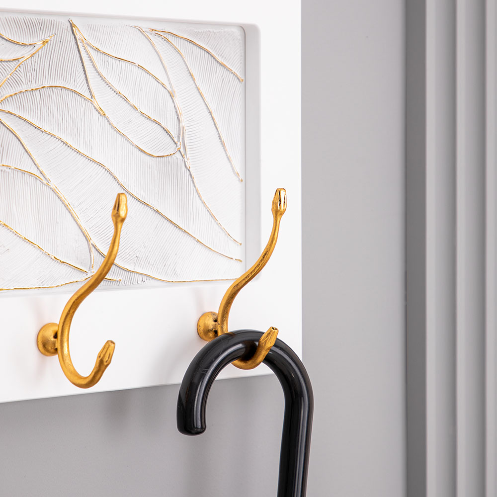 Основное назначение любой вешалки в прихожей - комфортно и компактно размещать верхнюю одежду и аксессуары. Прочный, надежный и износостойкий материал сохранит внешний вид изделия на долгие годы даже при постоянной эксплуатации. Кованые вешалки способны выдержать длительные нагрузки и большой вес тяжелой одежды. Компактность позволяет разместить предмет даже в самой малогабаритной прихожей. Настенный декор интерьера, панно на стену как кованая вешалка Монстера добавят уюта и шарма вашему дому, даче, офису, квартире. Оснащена полкой для головных уборов и шарфов. Вешалка кованая настенная Monstera Deliciosa выполнена полностью вручную методом горячей ковки, позолочена мастерами фабрики. Вешалка представлена в трех цветах: золото/серебро/бронза. В интерьере такой декор для дома выгодно оттенит любой современный стиль – лофт, скандинавский стиль, современный стиль. Гардеробная вешалка – стильное, оригинальное украшение для дома.