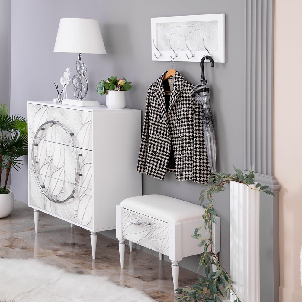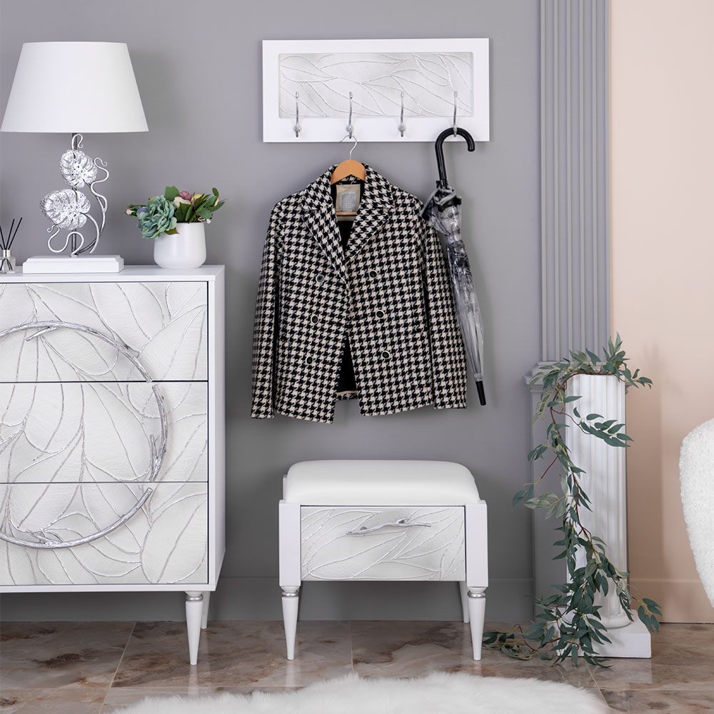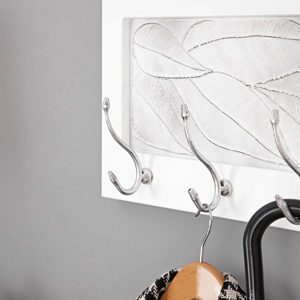 Основное назначение любой вешалки в прихожей - комфортно и компактно размещать верхнюю одежду и аксессуары. Прочный, надежный и износостойкий материал сохранит внешний вид изделия на долгие годы даже при постоянной эксплуатации. Кованые вешалки способны выдержать длительные нагрузки и большой вес тяжелой одежды. Компактность позволяет разместить предмет даже в самой малогабаритной прихожей. Настенный декор интерьера, панно на стену как кованая вешалка Монстера добавят уюта и шарма вашему дому, даче, офису, квартире. Оснащена полкой для головных уборов и шарфов. Вешалка кованая настенная Monstera Deliciosa выполнена полностью вручную методом горячей ковки, позолочена мастерами фабрики. Вешалка представлена в трех цветах: золото/серебро/бронза. В интерьере такой декор для дома выгодно оттенит любой современный стиль – лофт, скандинавский стиль, современный стиль. Гардеробная вешалка – стильное, оригинальное украшение для дома.