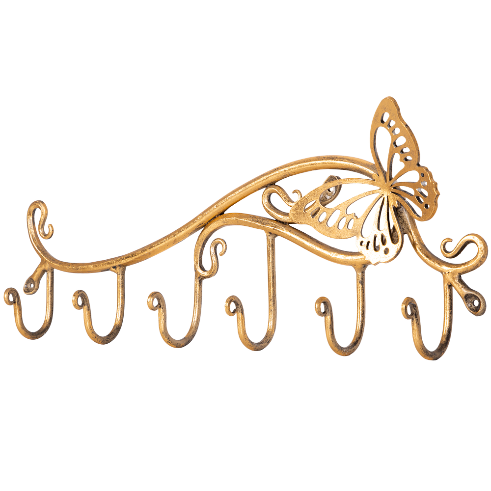 Вешалка настенная Бабочка Эир с 6-ю крючками. Стильная вешалка это незаменимое изделие, без которого не может обойтись ни один дом. Помимо элемента мебели, вешалка является одним из основных составляющих декора. Коллекция эксклюзивных вешалок, представленная в каталоге фабрики BOGACHO, отличается оригинальностью дизайна. Вы можете купить как напольные, кованые вешалки, так и настенные вешалки с тремя, пятью и более крючками. По своему качеству вешалка для прихожей от лучших мастеров BOGACHO способна удовлетворить требования даже самых взыскательных владельцев. Красота и эксклюзивность, столь необходимые современному интерьеру, сошлись вместе с практичностью и высочайшим качеством исполнения.